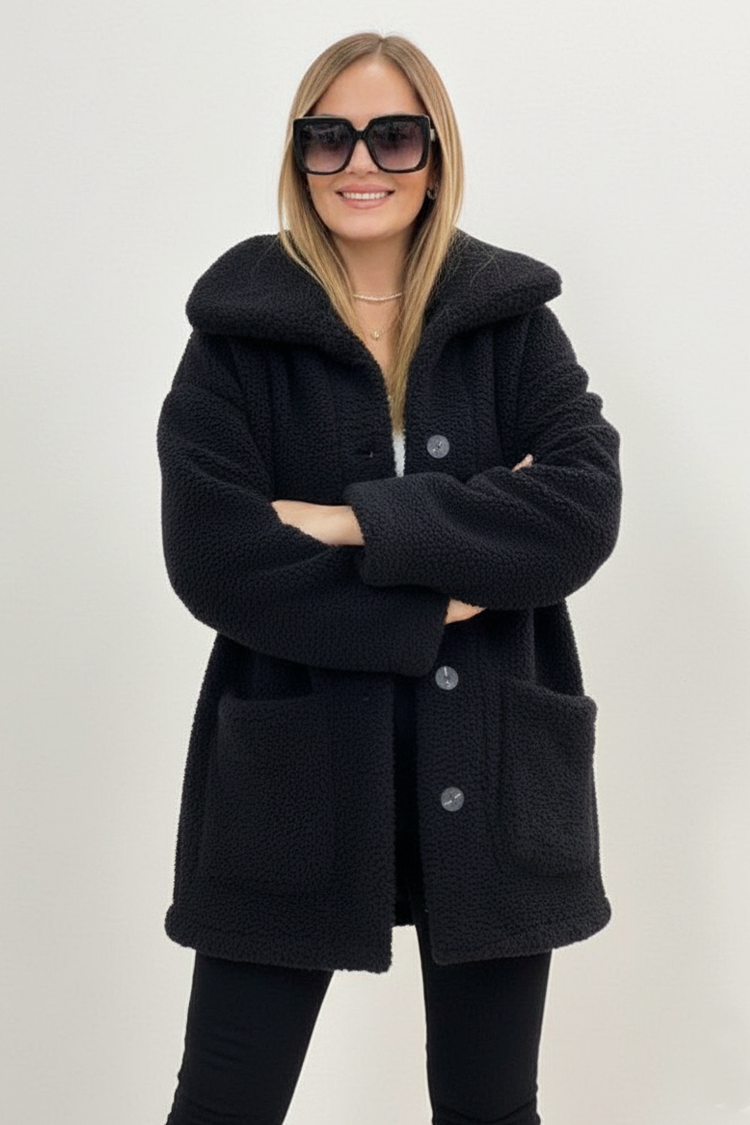 - Płaszcz wykonany jest z miękkiego materiału, który zapewnia komfort termiczny.