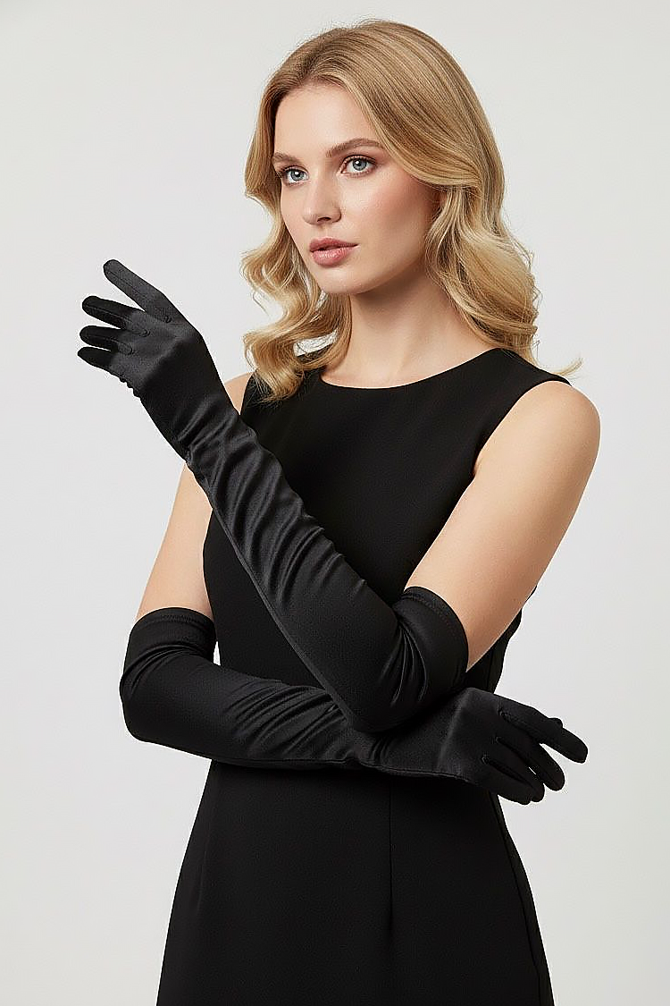 - Stwórz imponujący, modny look z damskimi satynowymi rękawiczkami.