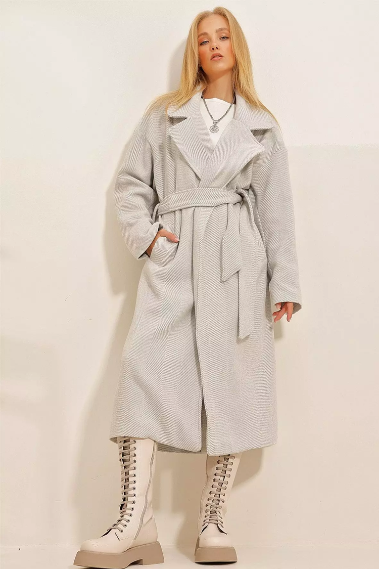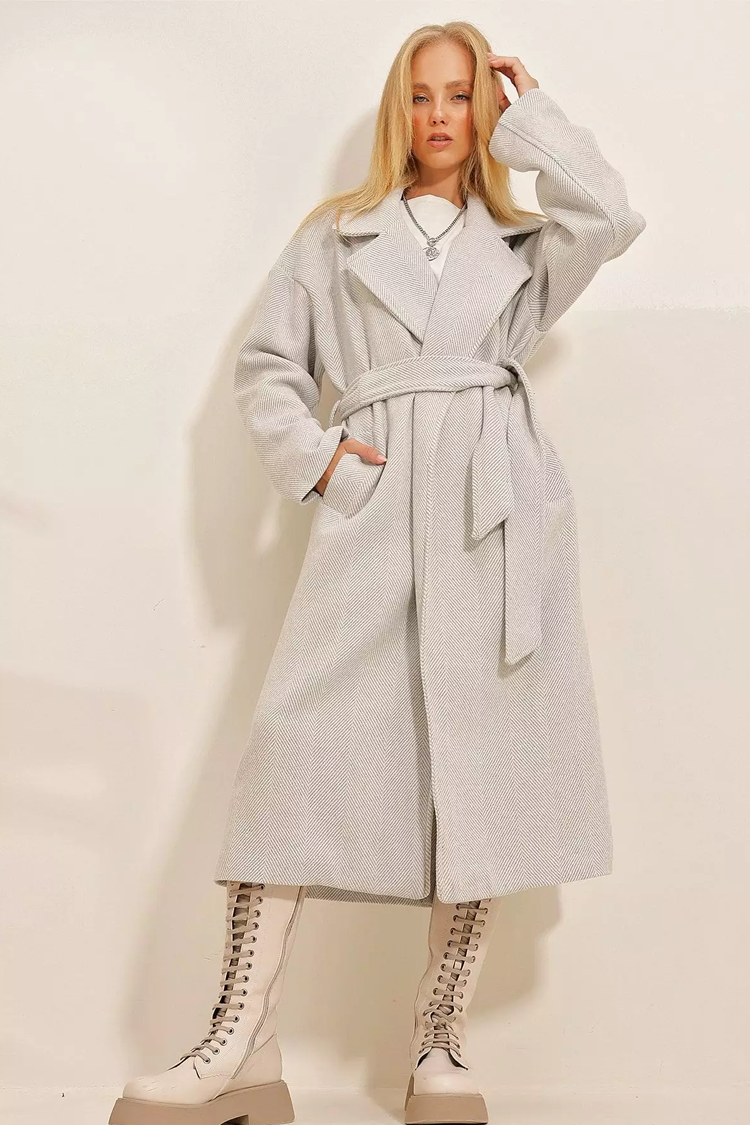 - Wybierz ten długi płaszcz o modnym kroju, który sprawdzi się w różnych stylizacjach.
