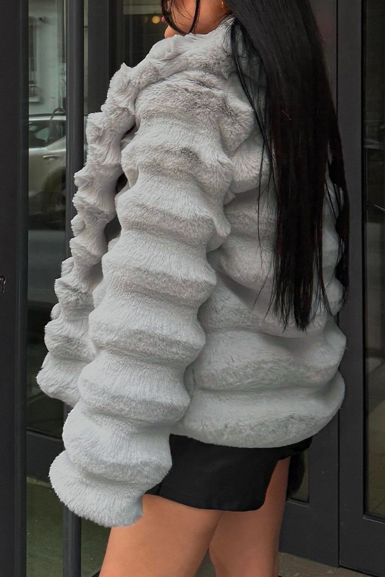 - Płaszcz wykonany jest z ekologicznego futra, które gwarantuje komfort termiczny.