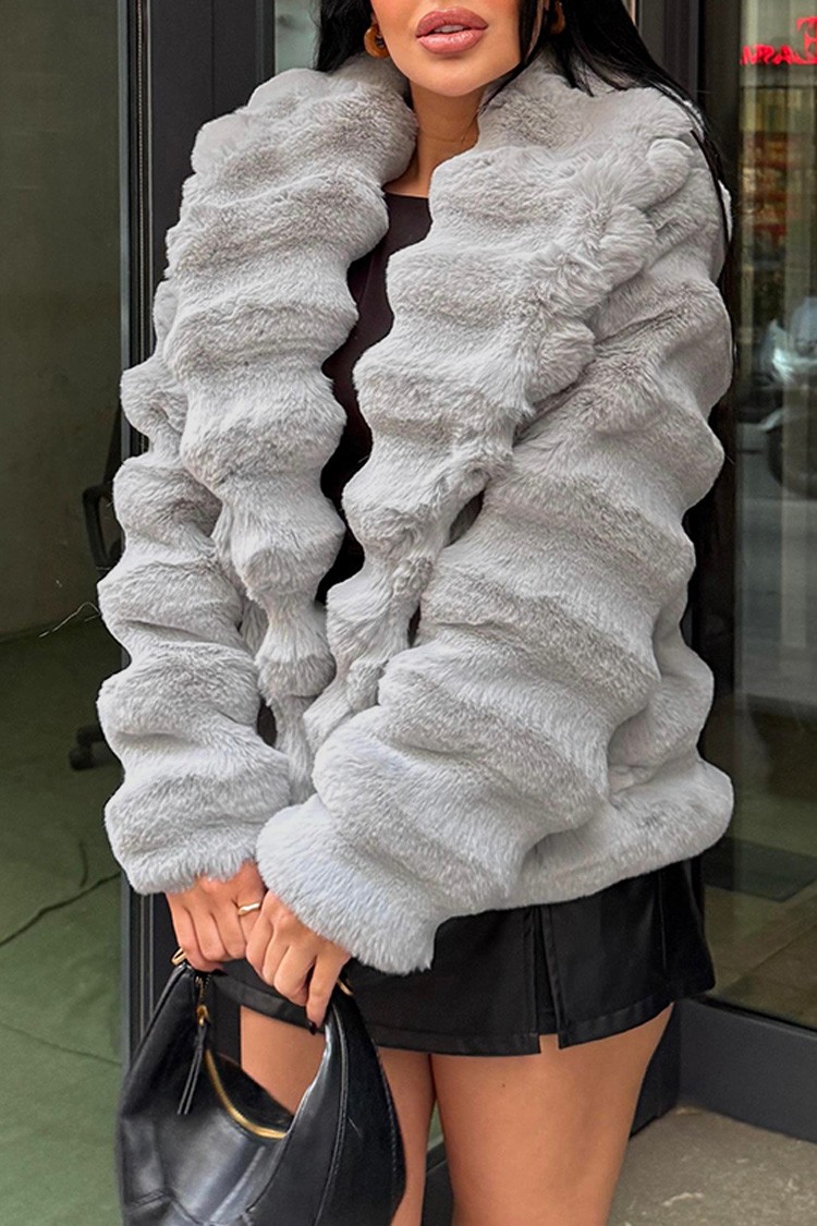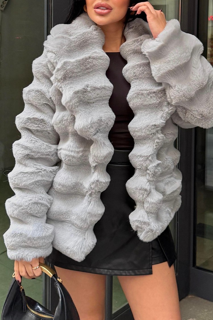 - Wybierz ten puszysty płaszcz o atrakcyjnym wzorze, pasujący do różnych modowych stylizacji.