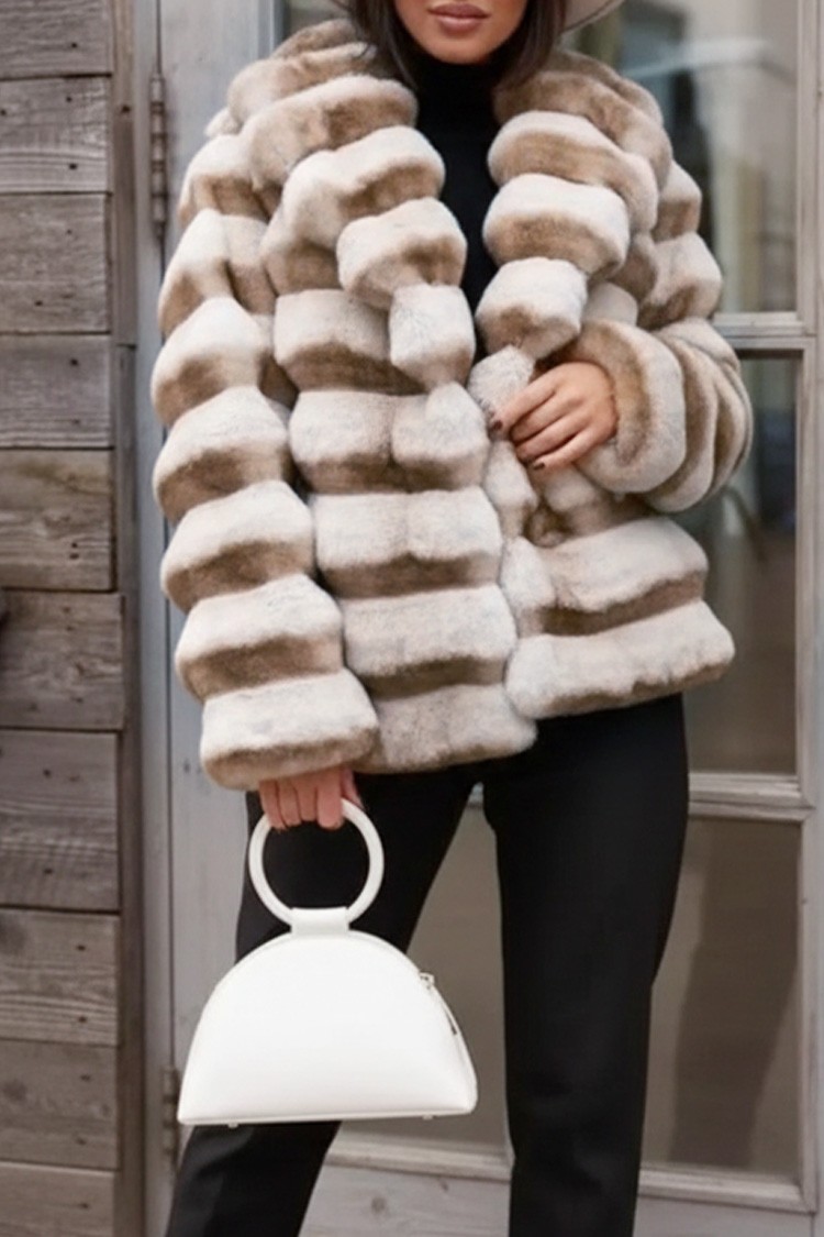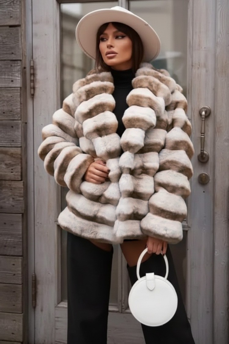 - Wybierz ten puszysty płaszcz o atrakcyjnym wzorze, pasujący do różnych modowych stylizacji.
