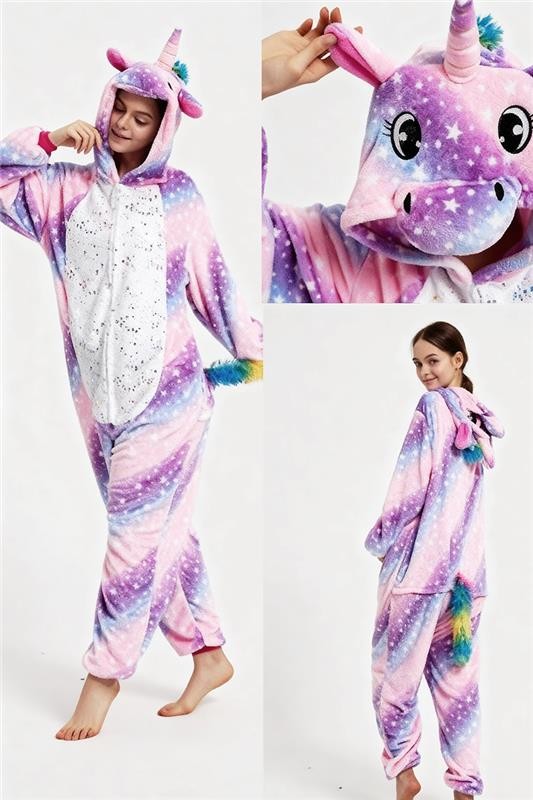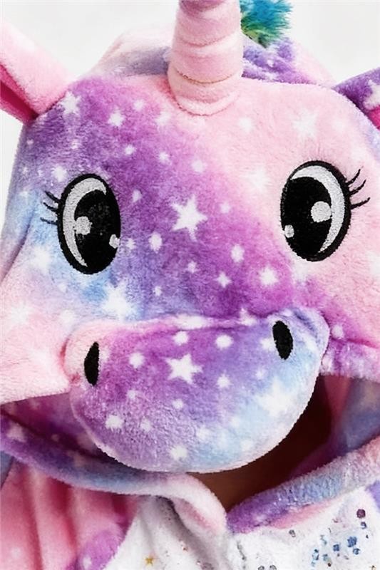 - Model ma długie rękawy, motyw jednorożca, zamek błyskawiczny z przodu, kaptur i kolorowy ogon.