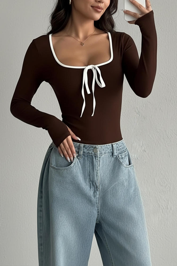 - Model ma seksowny krój, seksowny dekolt i czarne detale.