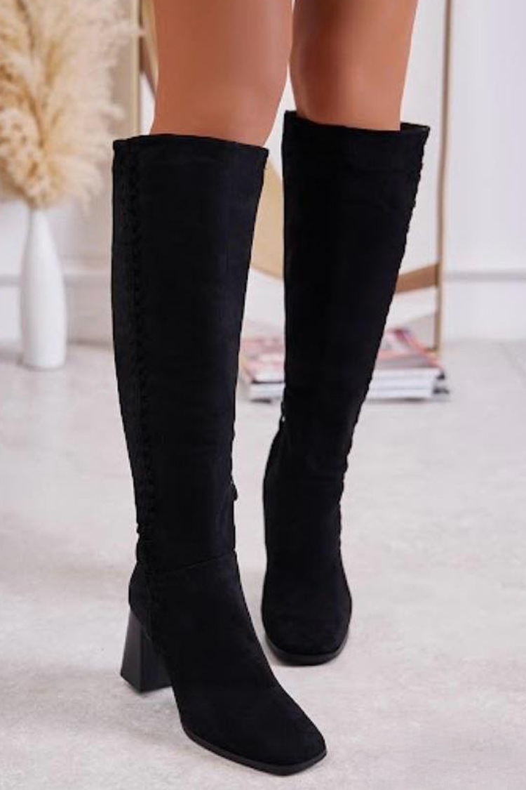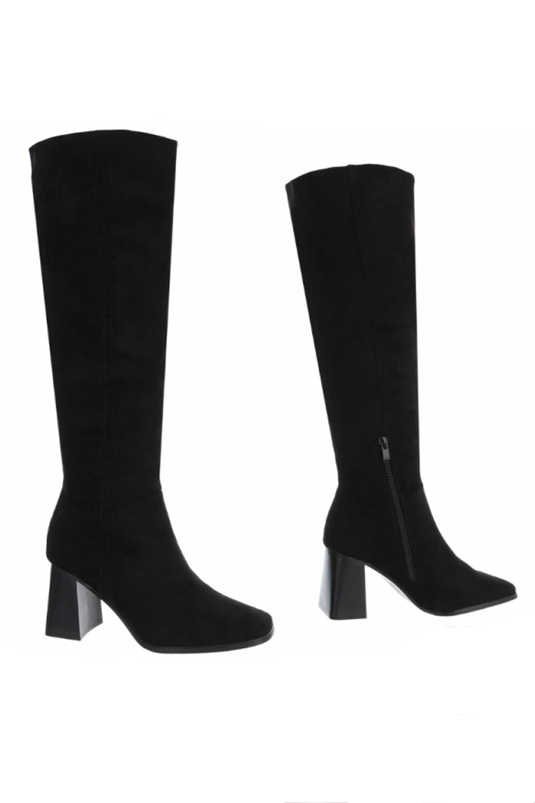- Elegancki i stylowy model damskich kozaków z miękkiego eko zamszu w klasycznym kolorze.