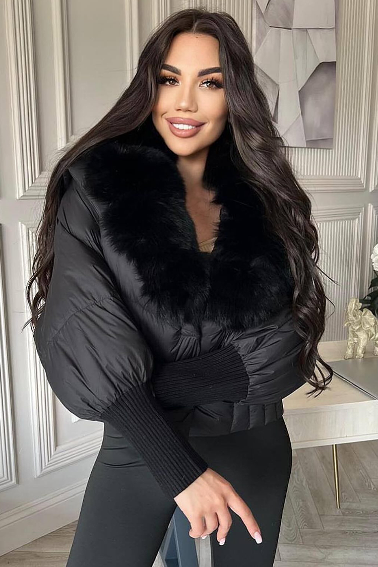 - Model ma wygodny krój, zapięcie na guziki, obszerny puchowy kołnierz oraz boczne kieszenie.