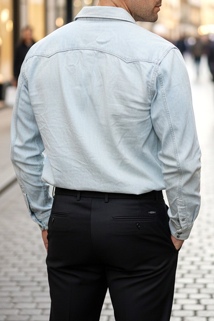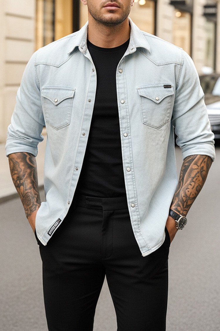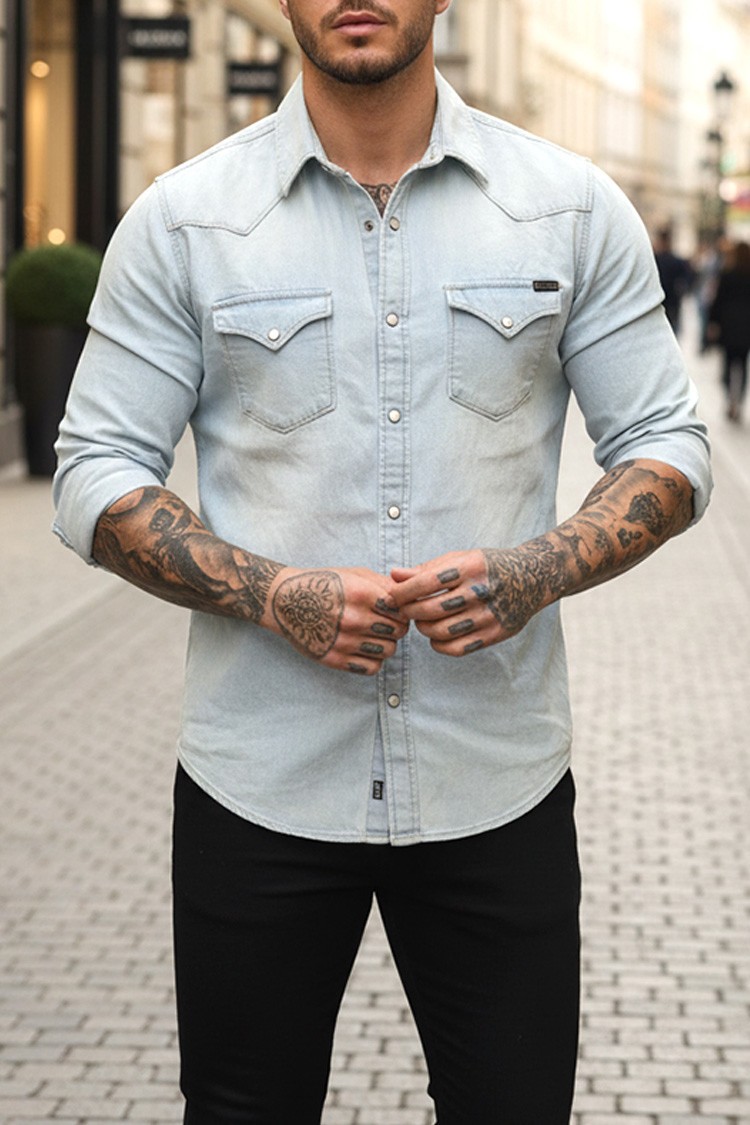 - Wykonana z miękkiego, bawełnianego denimu o luźnym kroju, pasującym do każdej sylwetki. Model posiada stylowe szwy, które podkreślają linię koszuli.