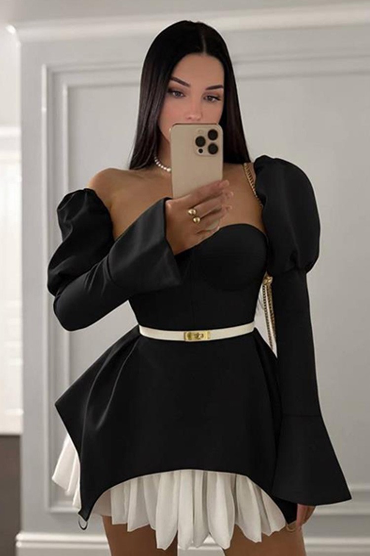 - Wybierz tę krótką sukienkę w kolorze bordowym, odpowiednią na każdą specjalną okazję.
