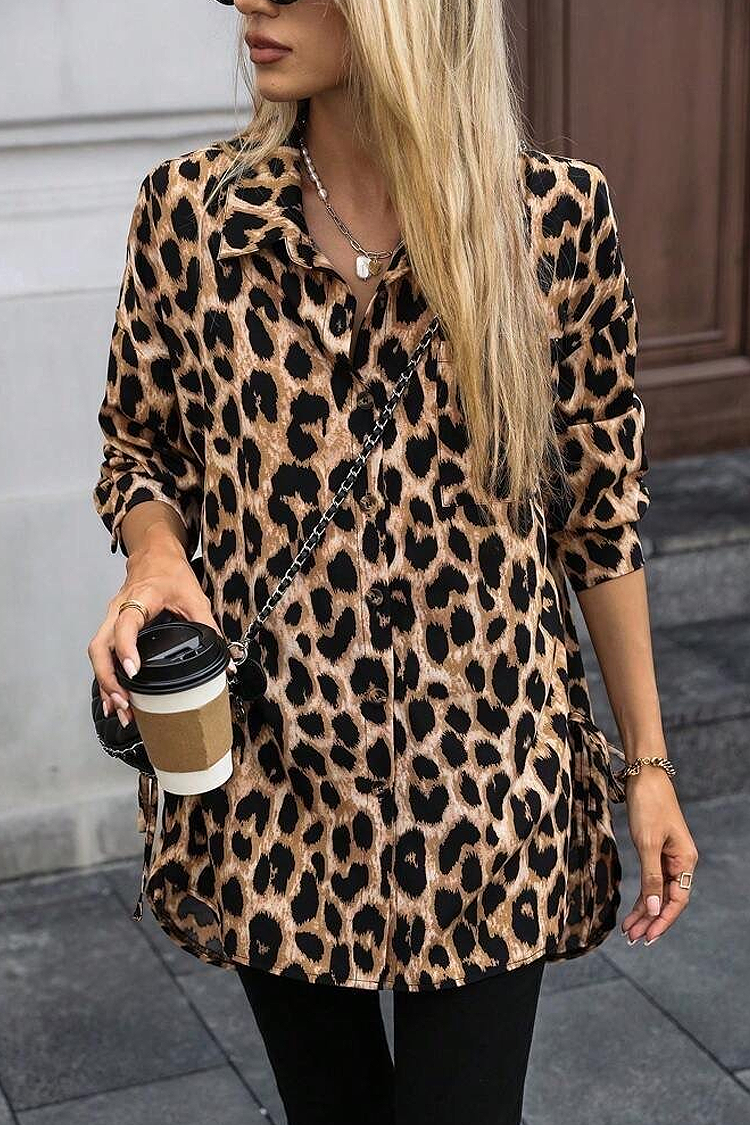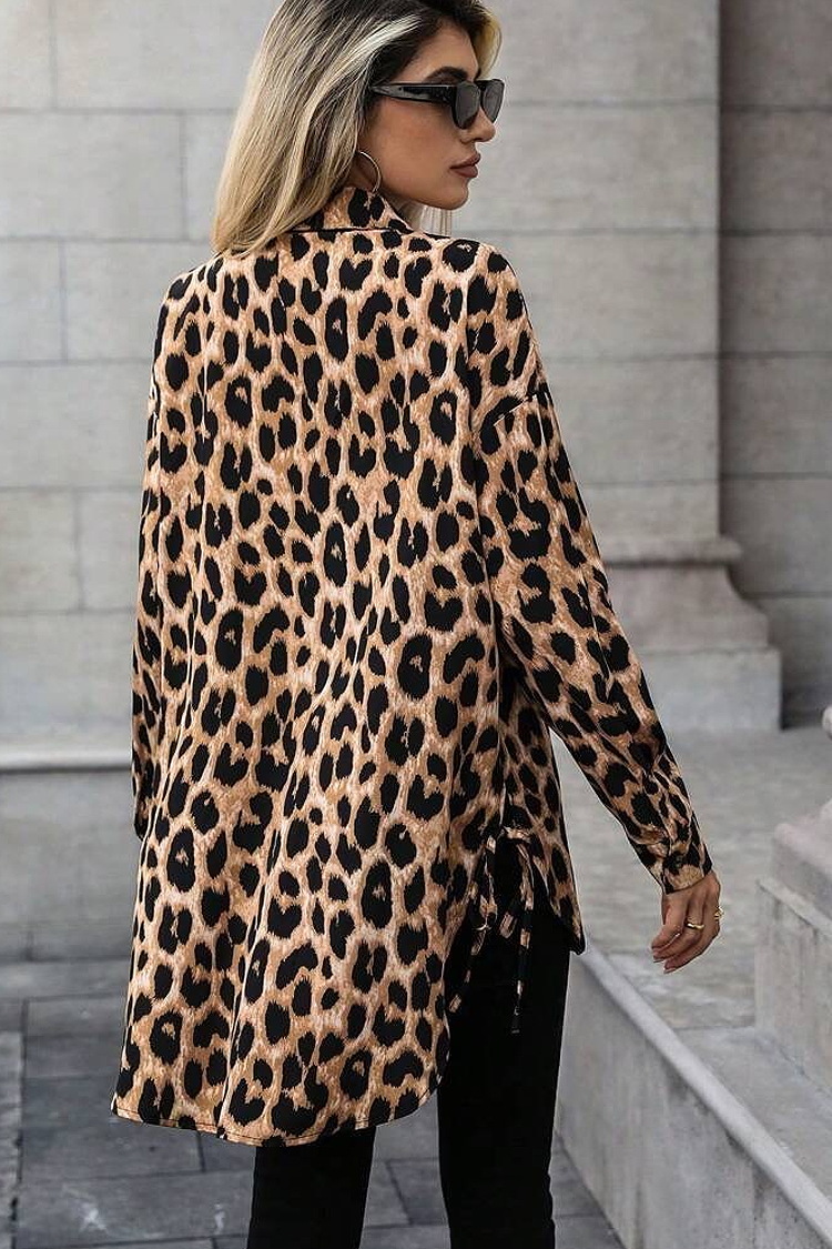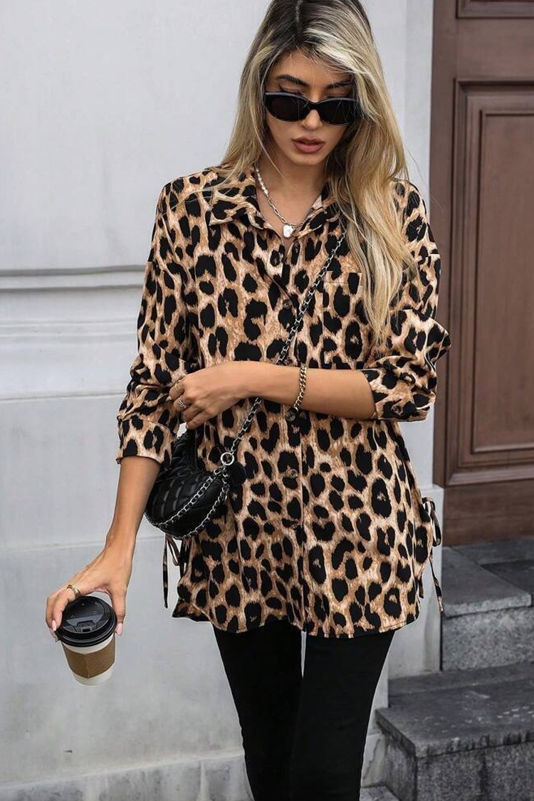 - Model ma nadruk w panterkę, standardowe zapięcie na guziki i oversize'owy krój.