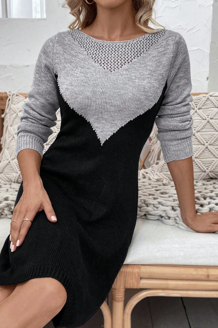- Aby stworzyć codzienną stylizację, wybierz tę krótką sukienkę w dwukolorowy wzór.