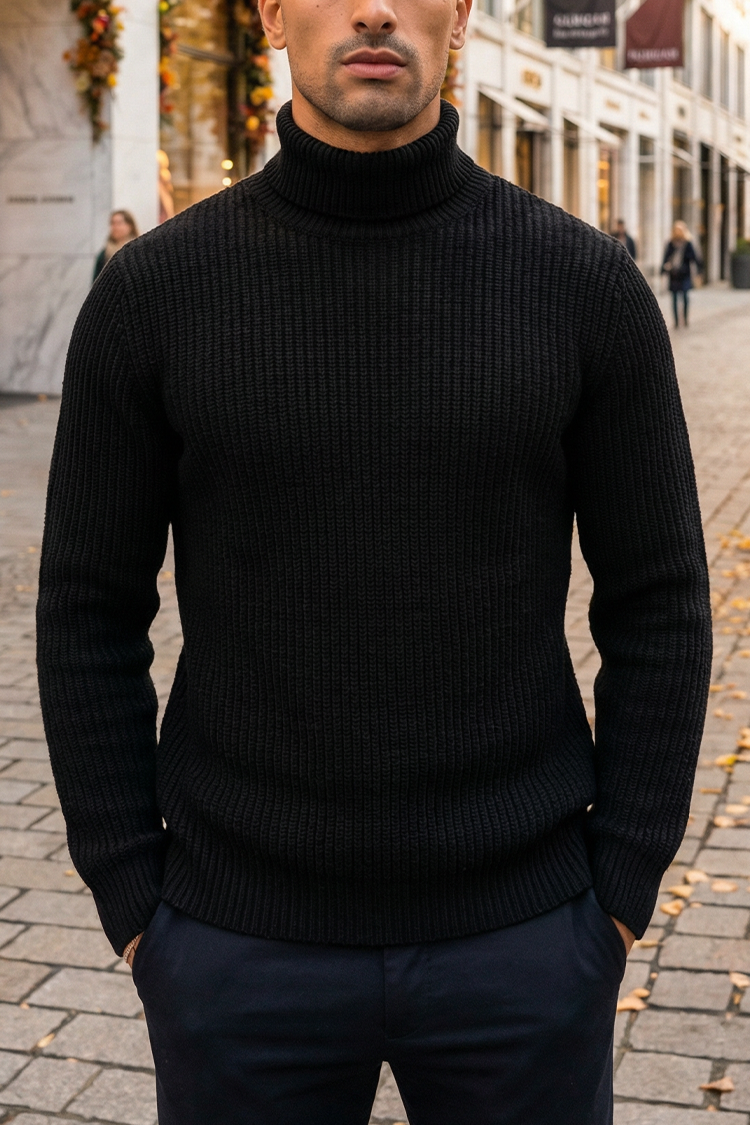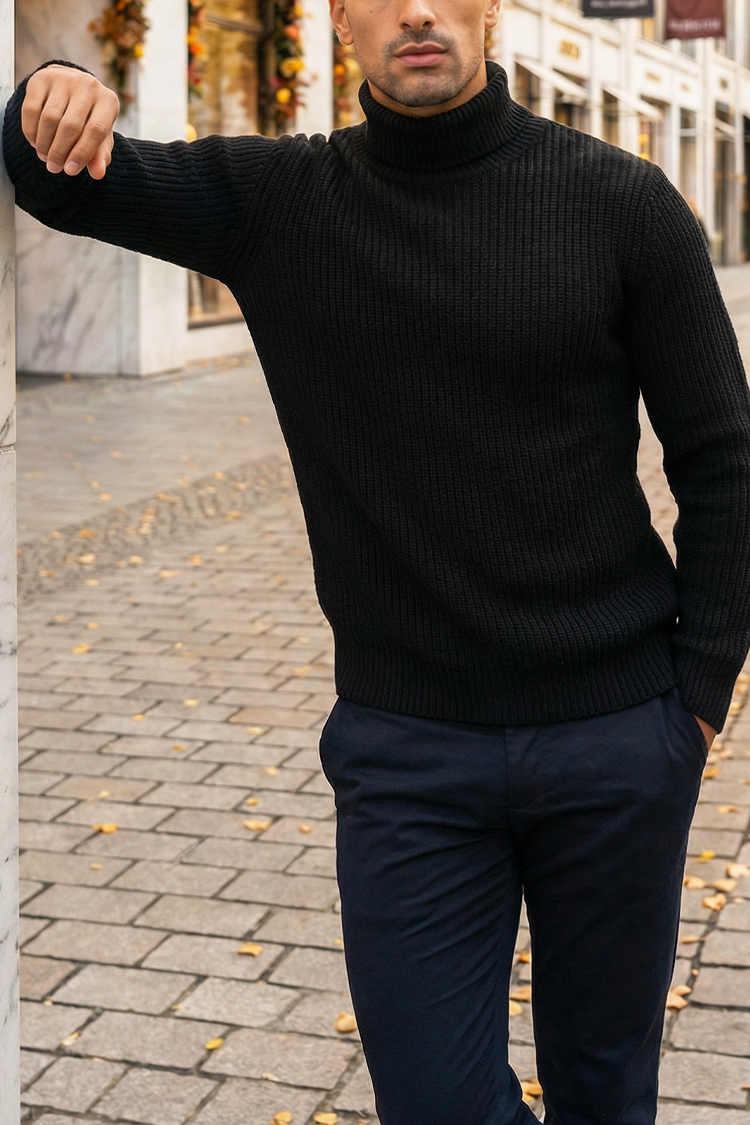 - Ciepły męski golf i prostym wzorem w kolorze czarnym, pasujący do różnych stylizacji.