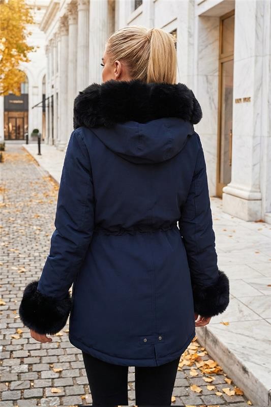 - Model posiada elastyczną talię z regulowanymi troczkami, praktyczny kaptur i kieszenie boczne.