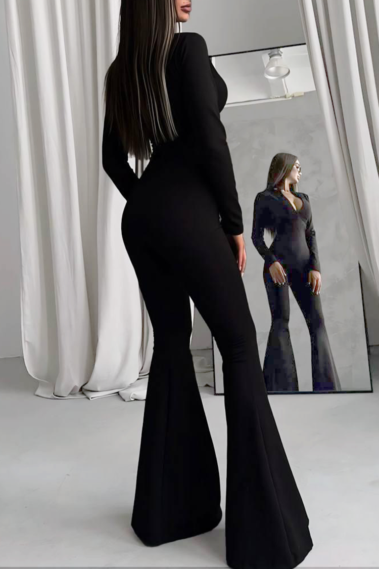 - Seksowny kombinezon w jednolitym wzorze i efektownym dekolcie, idealny na co dzień i na imprezę.