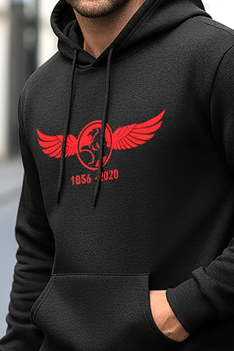 - Praktyczna męska bluza z nadrukiem w kolorze czarnym, pasująca do różnych stylizacji.