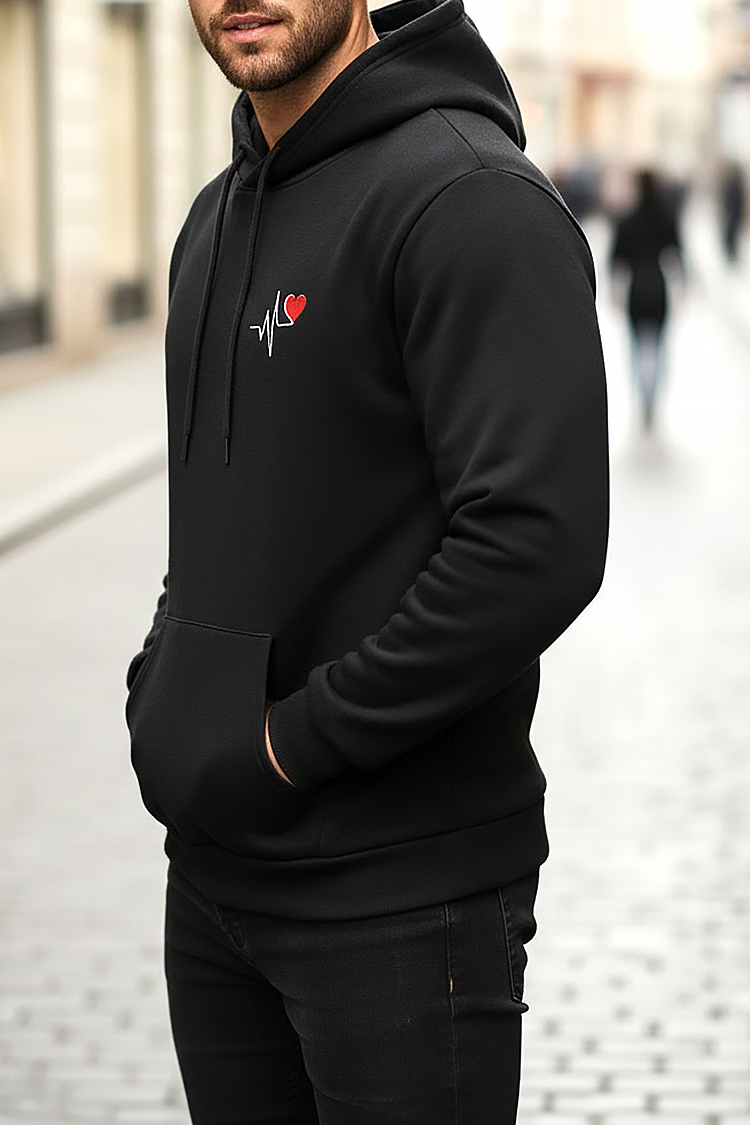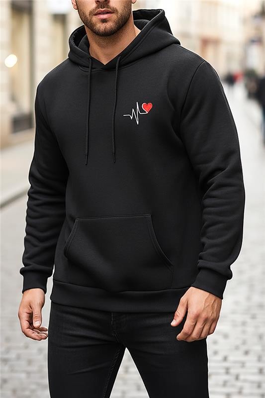 - Praktyczna męska bluza z nadrukiem w kolorze czarnym, pasująca do różnych stylizacji.