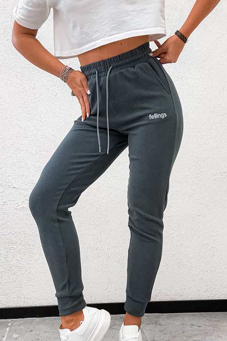 - Wygodne spodnie w jednolitym kolorze, idealne uzupełnienie sportowej stylizacji.