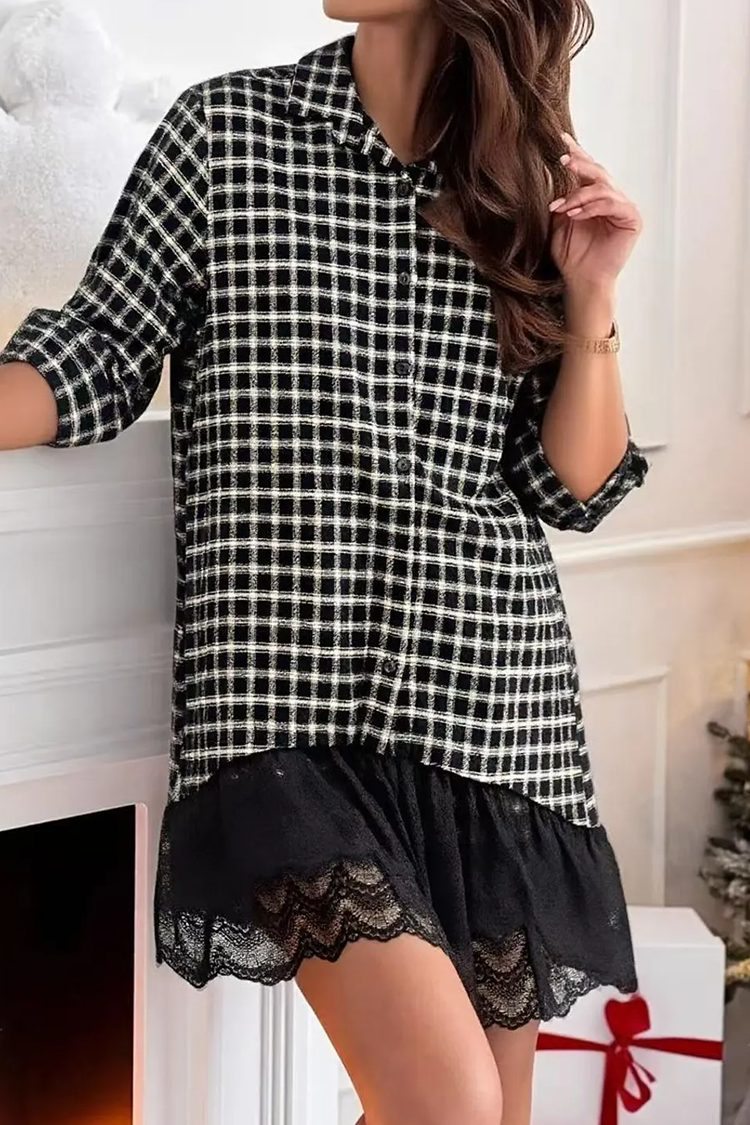 - Model ma wygodny krój, guziki przy dekolcie i efektowny wzór w kratkę.