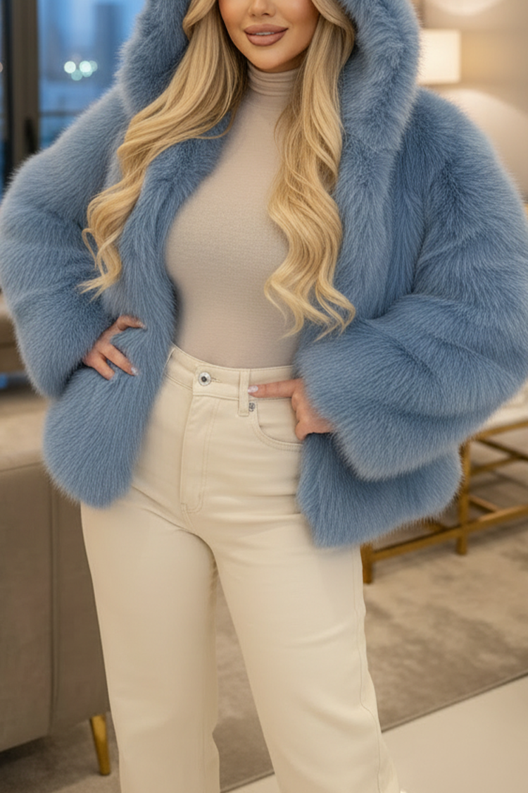 - Model ma swobodny krój, pasujący do każdej sylwetki i z kapturem.