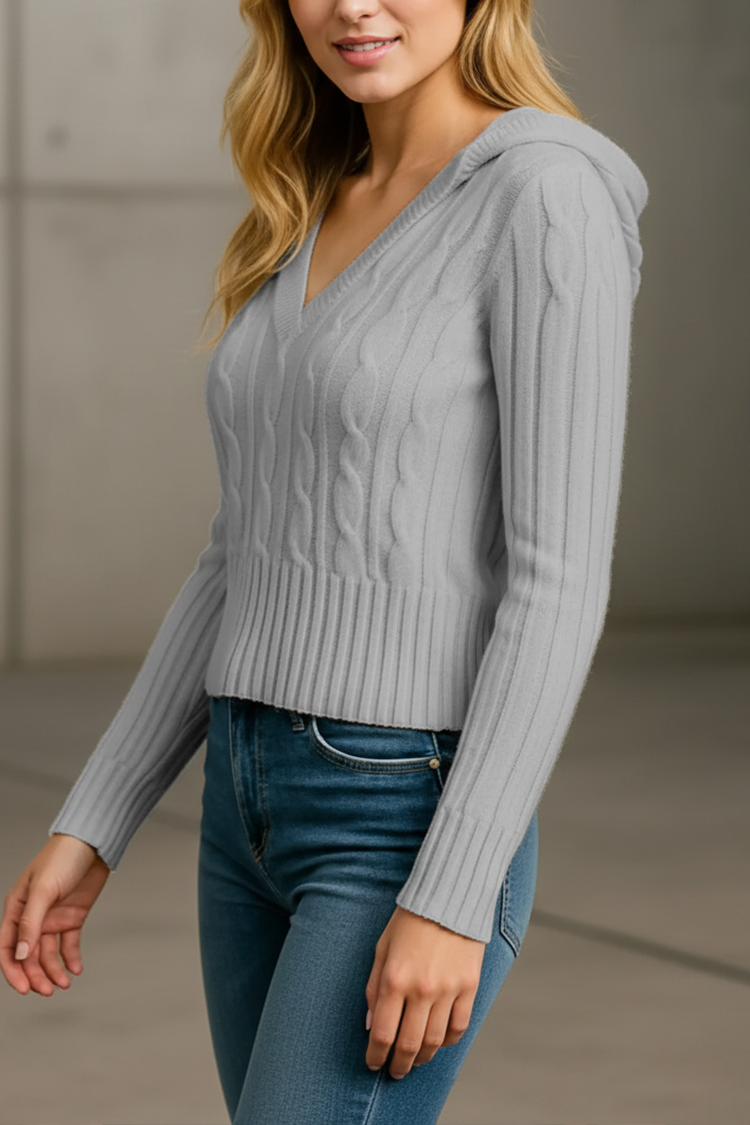 - Praktyczny sweter z jednolitym wzorem, pasujący do różnych zimowych stylizacji.
