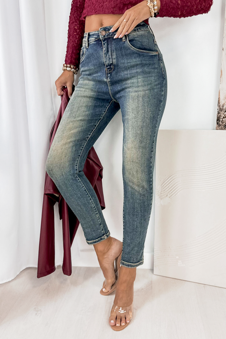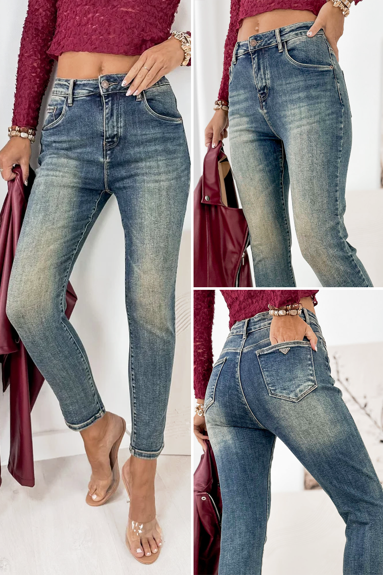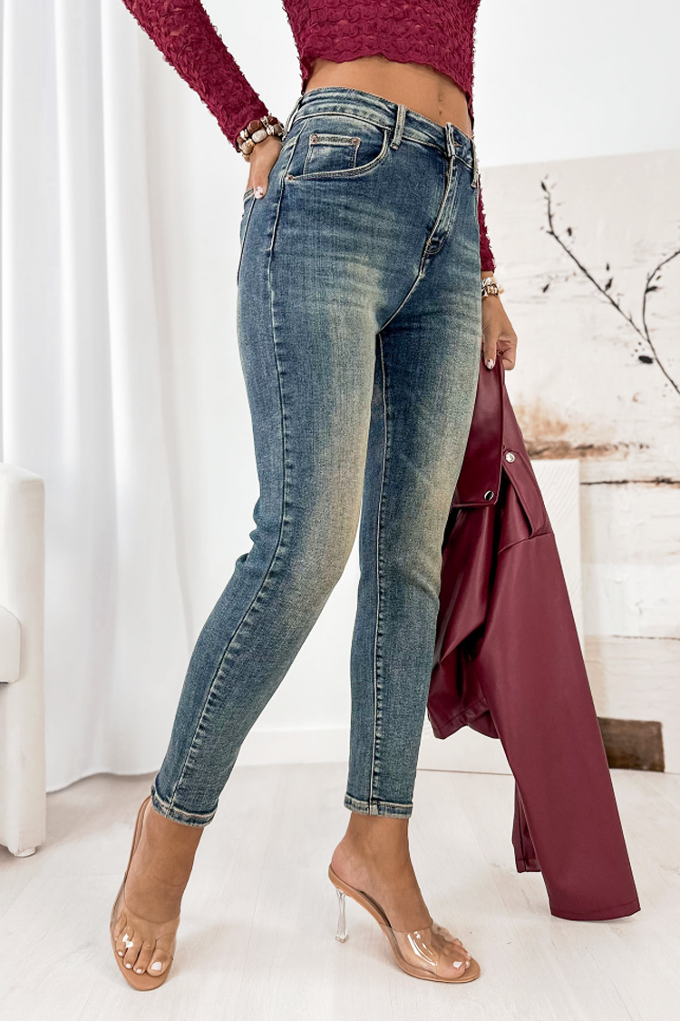 - Podstawowy model damskich jeansów w kolorze jasnoniebieskim z efektem wybielenia, idealny na co dzień lub na spacer.
