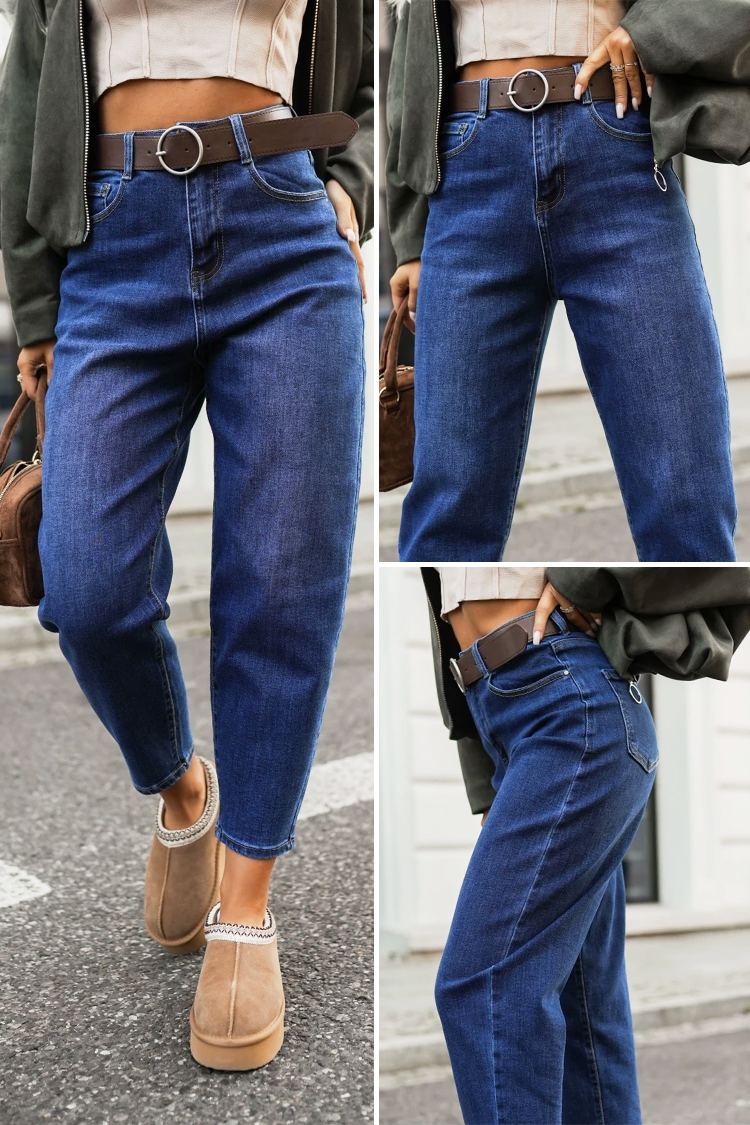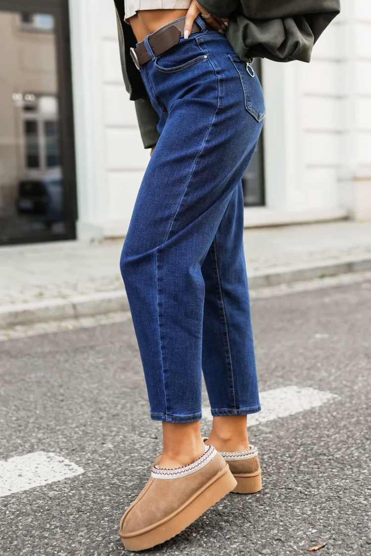 - Damskie jeansy w kolorze granatowym, idealne na co dzień lub na spacer.