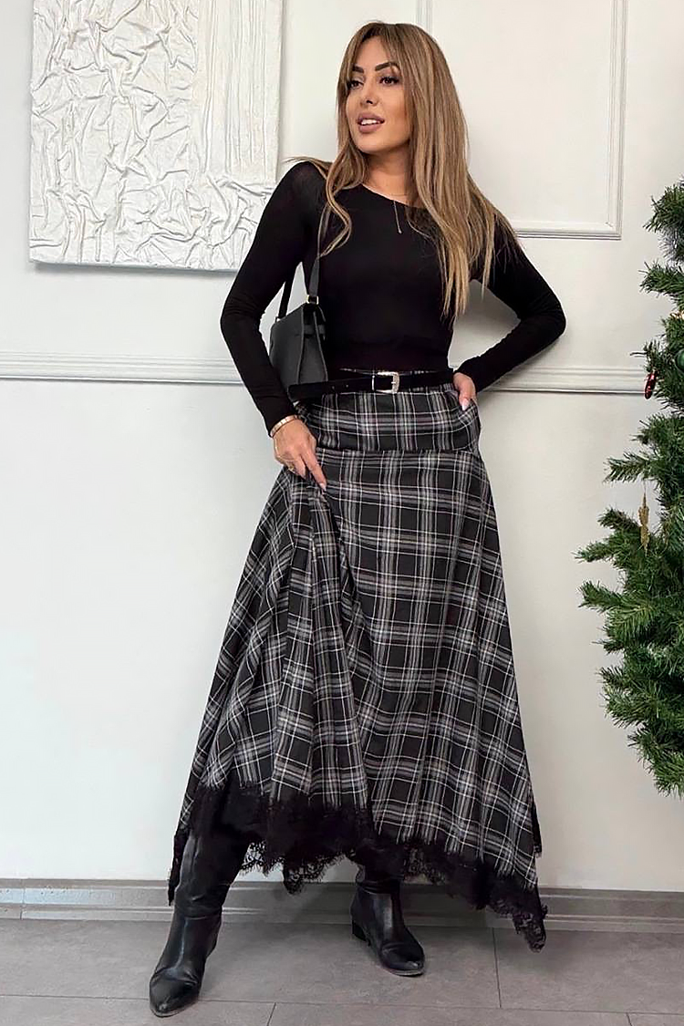 - Model ma wysoki stan, atrakcyjną koronkę i efektowny, kratkowany wzór.