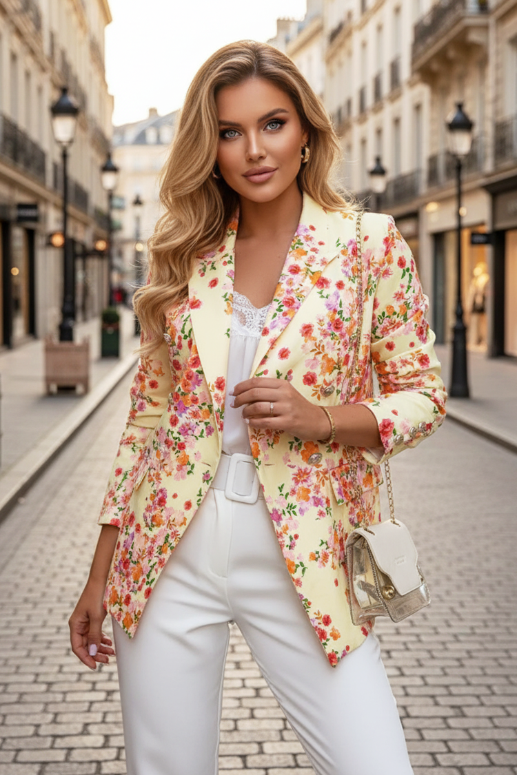 - Urozmaicaj swój look tą marynarką z kwiatowym wzorem, która sprawdzi się w różnych stylizacjach.