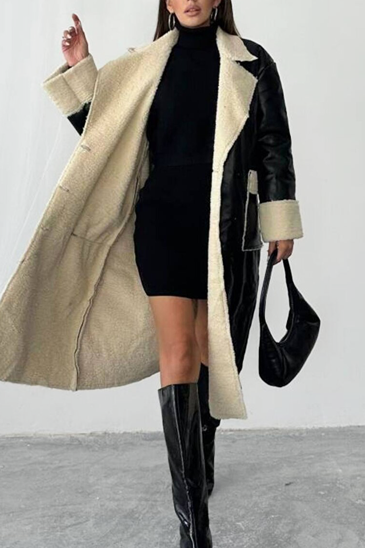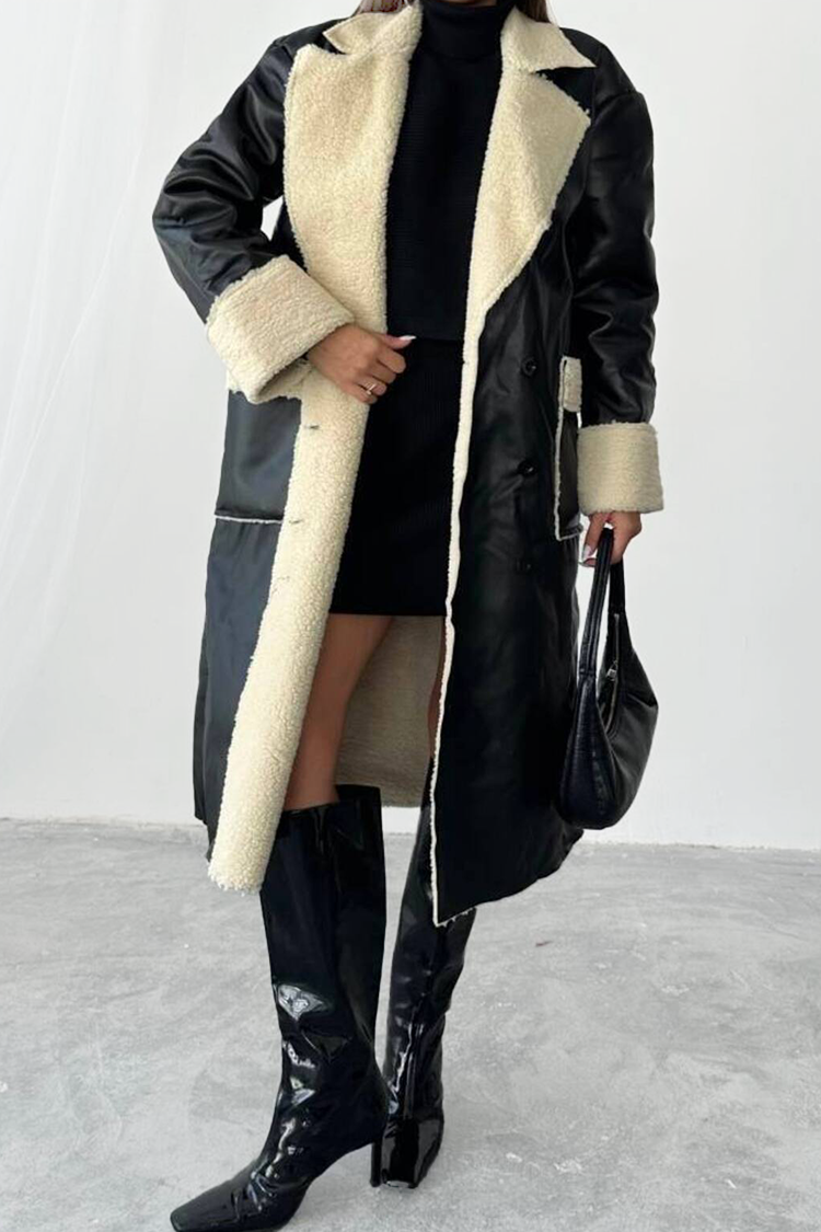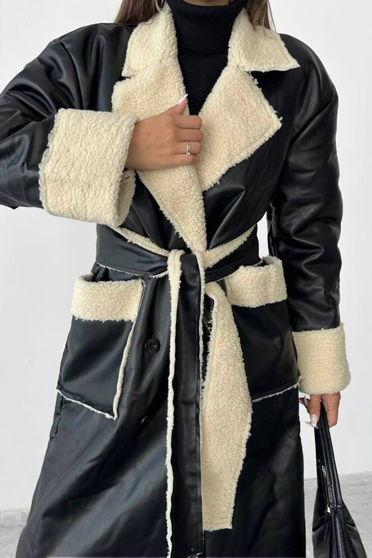 - Model charakteryzuje się klasycznym krojem, eleganckim kołnierzem, paskiem, kieszeniami bocznymi oraz puchowymi detalami, które dodają mu wyjątkowego charakteru.