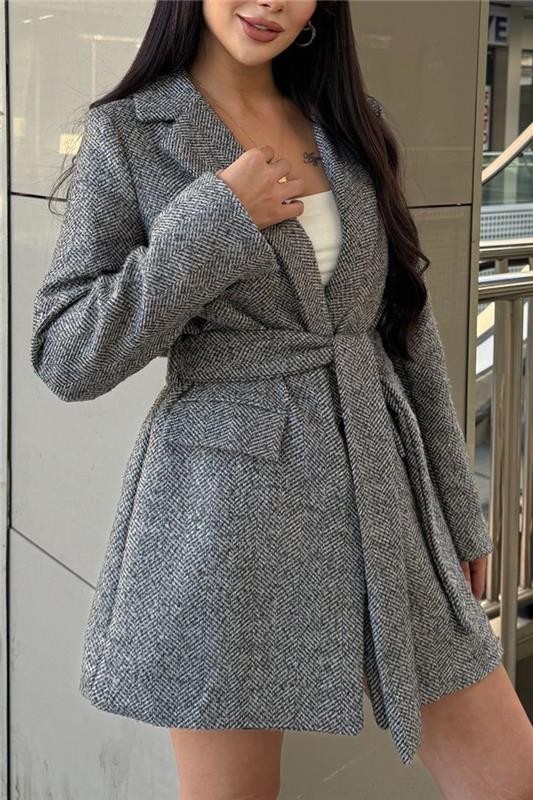 - Połącz styl z wygodą! Model ma klasyczny krój, guziki, kieszenie i pasek z tego samego materiału.