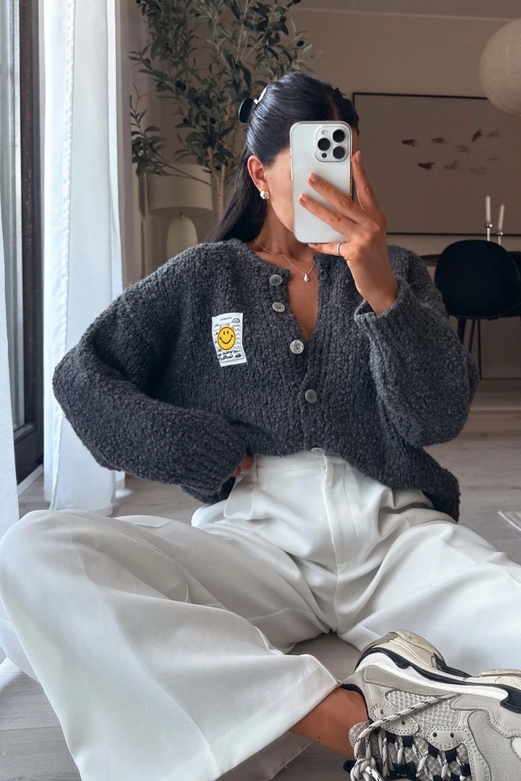 Połącz wygodę z elegancją dzięki temu spektakularnemu damskiemu kardiganowi o klasycznym kroju, idealnemu do codziennych stylizacji. Wykonany z delikatnego materiału przyjaznego dla skóry, gwarantuje komfort noszenia przez cały dzień.