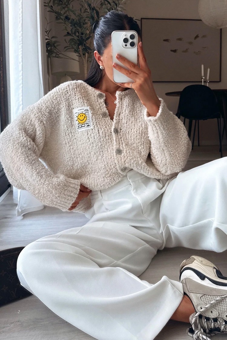 Połącz wygodę z elegancją dzięki temu spektakularnemu damskiemu kardiganowi o klasycznym kroju, idealnemu do codziennych stylizacji. Wykonany z delikatnego materiału przyjaznego dla skóry, gwarantuje komfort noszenia przez cały dzień.
