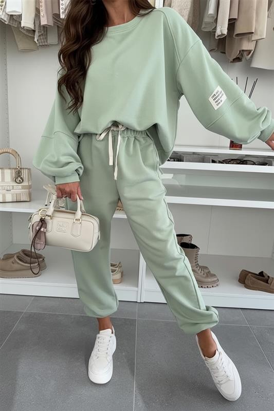 Dwuczęściowy komplet damski w jednolitym kolorze. Na co dzień wybierz dwuczęściowy komplet w jednolitym kolorze, który łączy wygodę z nowoczesnym stylem. Materiał jest miękki, przyjemny w dotyku i zapewnia komfort termiczny podczas noszenia. Bluzka ma luźny krój, długie rękawy i została wykonana z łączonego materiału, który subtelnie podkreśla sylwetkę. Spodnie mają wysoki, elastyczny pas, praktyczne kieszenie boczne i ściągacze przy nogawkach, dzięki czemu idealnie dopasowują się do ciała. Komplet można łączyć zarówno z casualowymi, jak i sportowymi stylizacjami, tworząc wygodne i modne zestawy na każdy dzień.