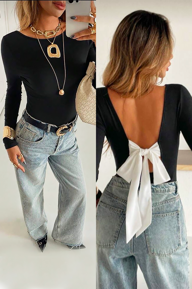 Styl i kobiecość – wycięcie na plecach i dekoracyjna wstążka podkreślają sylwetkę