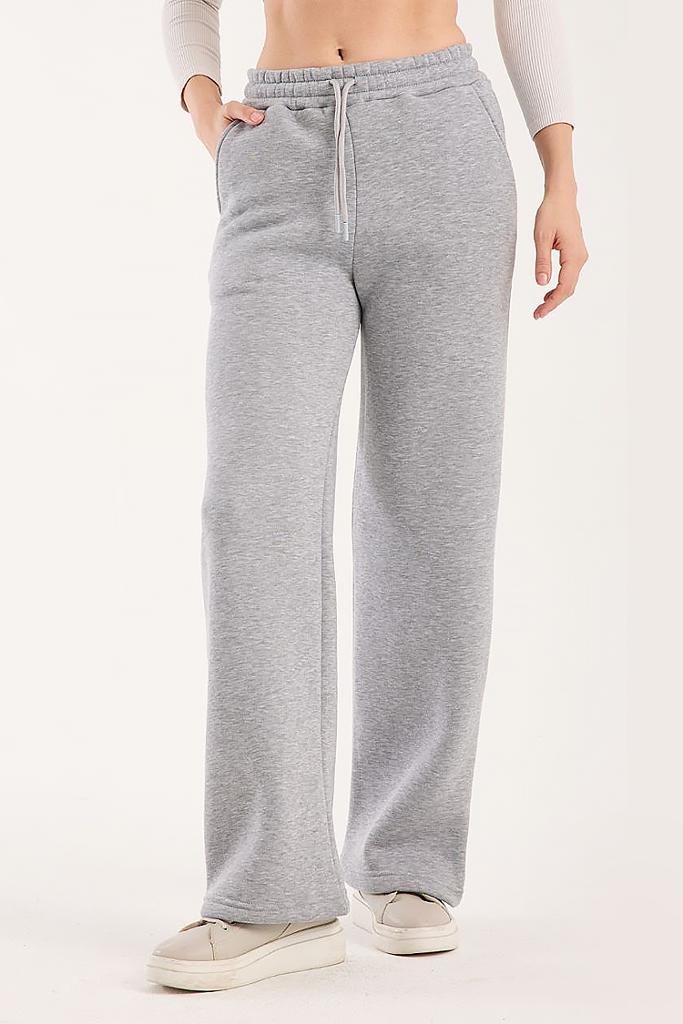 Sportowe spodnie damskie w szarym kolorze. Wyróżnij się dzięki tym nowoczesnym, sportowym spodniom w klasycznych kolorach. Wykonane z przyjemnego i delikatnego dla skóry materiału, który zapewnia niesamowity komfort noszenia przez cały dzień. Model posiada wysoki, elastyczny pas, praktyczne kieszenie boczne, wiązania oraz szerokie nogawki, co zapewnia wygodę i swobodę ruchów. Świetnie sprawdzą się w codziennych, sportowych i casualowych stylizacjach.