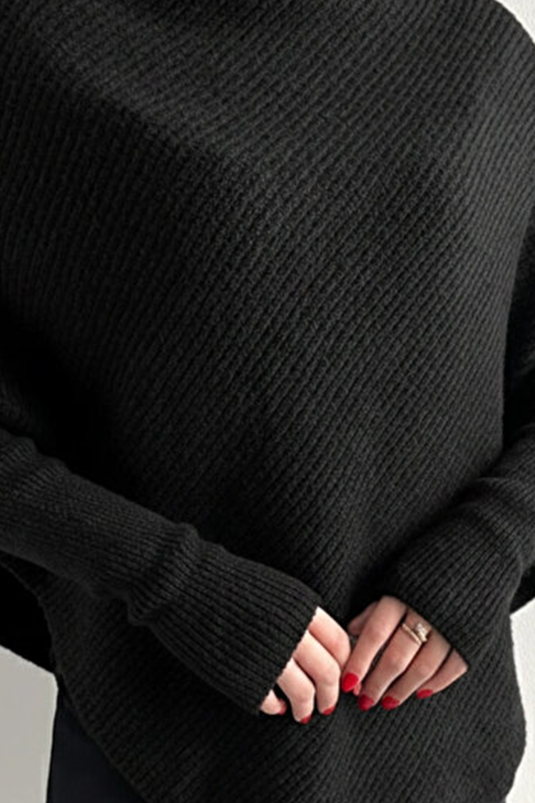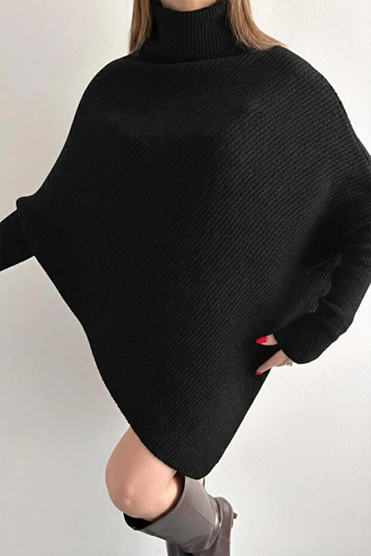 Miękkie i ciepłe ponczo o luźnym kroju, w czarnym kolorze, idealne do noszenia na co dzień. Wykonane z przyjaznej dla skóry dzianiny, która zapewnia komfort termiczny i przyjemne uczucie podczas noszenia. Model ma jednolity wzór i wysoki kołnierz, który chroni przed chłodem i dodaje stylowego charakteru.