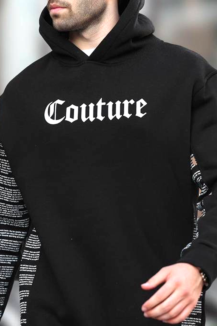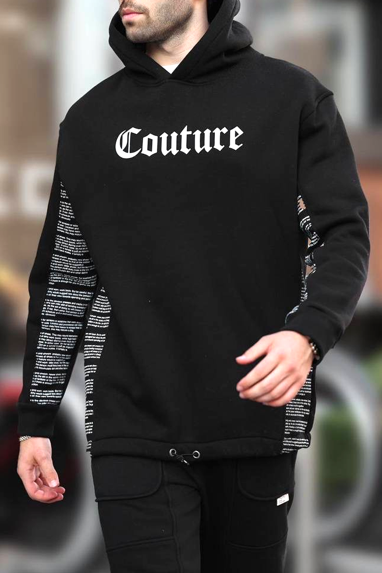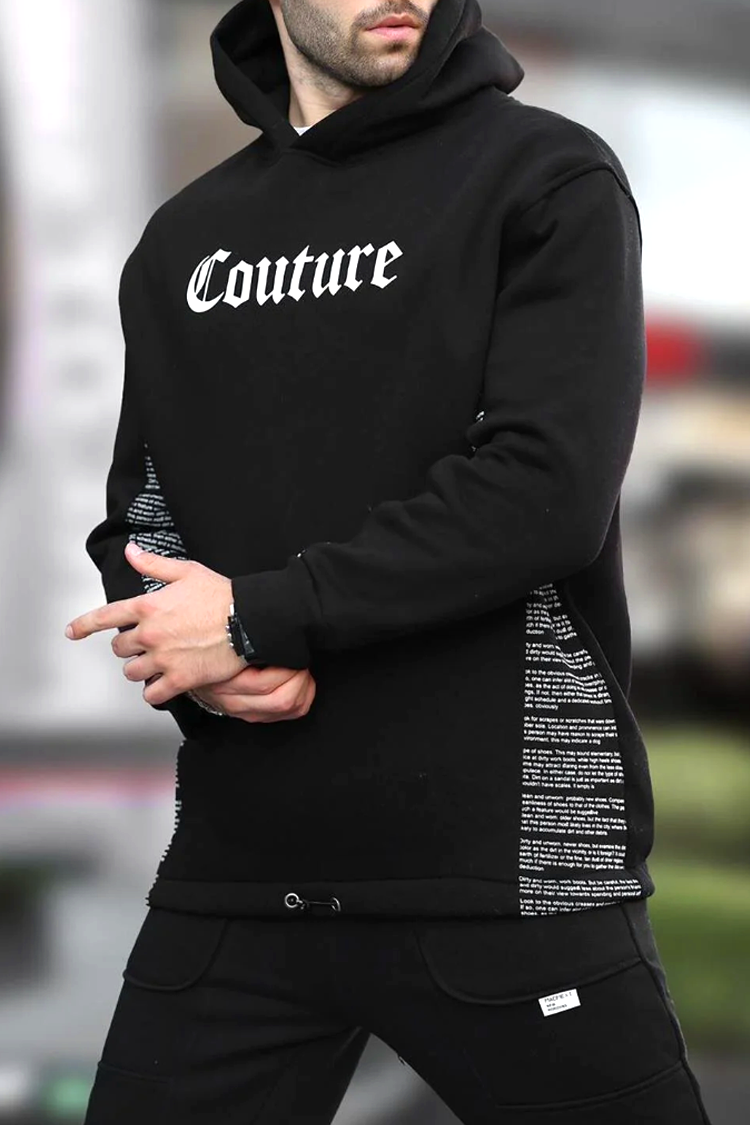 - Praktyczna męska bluza w klasycznym czarnym kolorze z wyrazistym, kontrastowym napisem, idealna na co dzień lub na spacer.