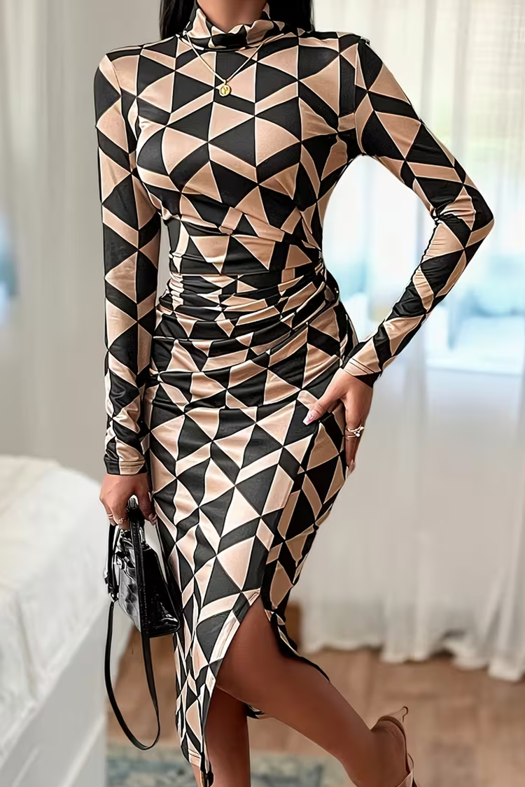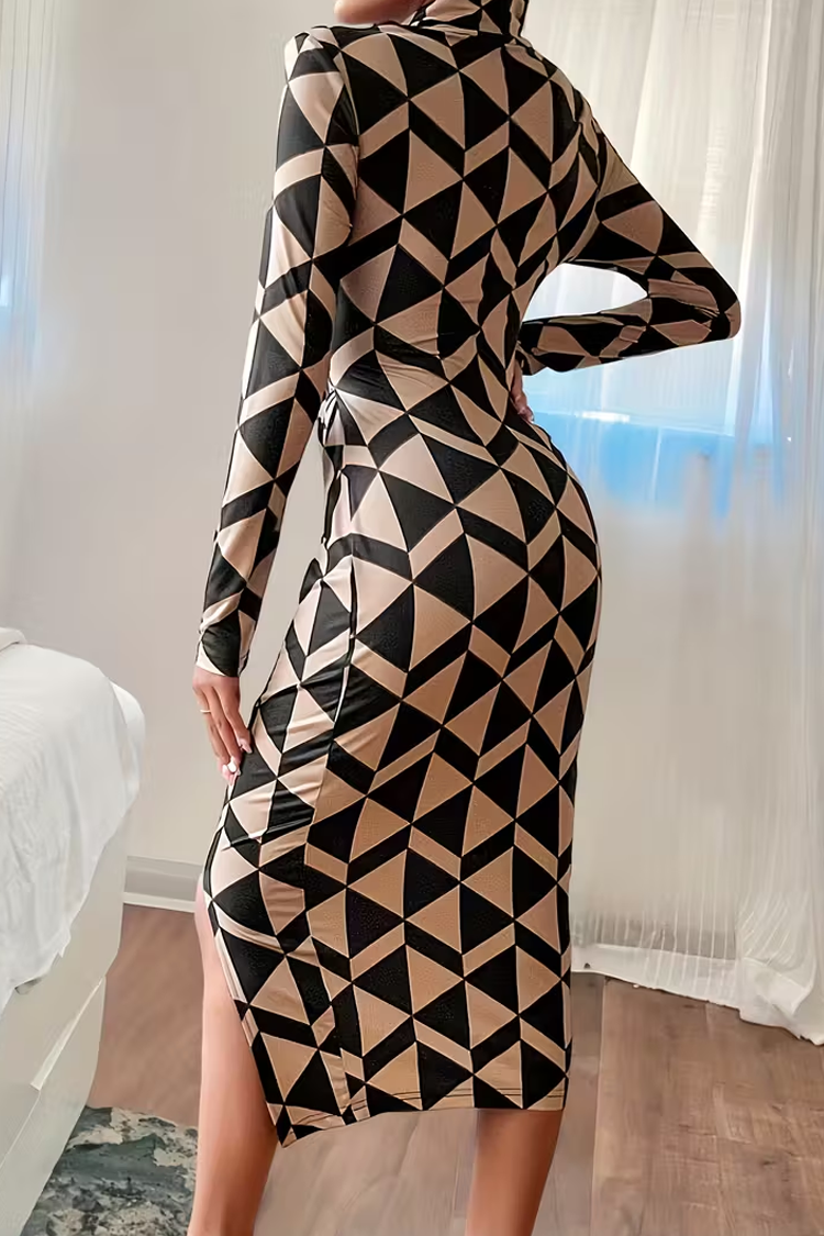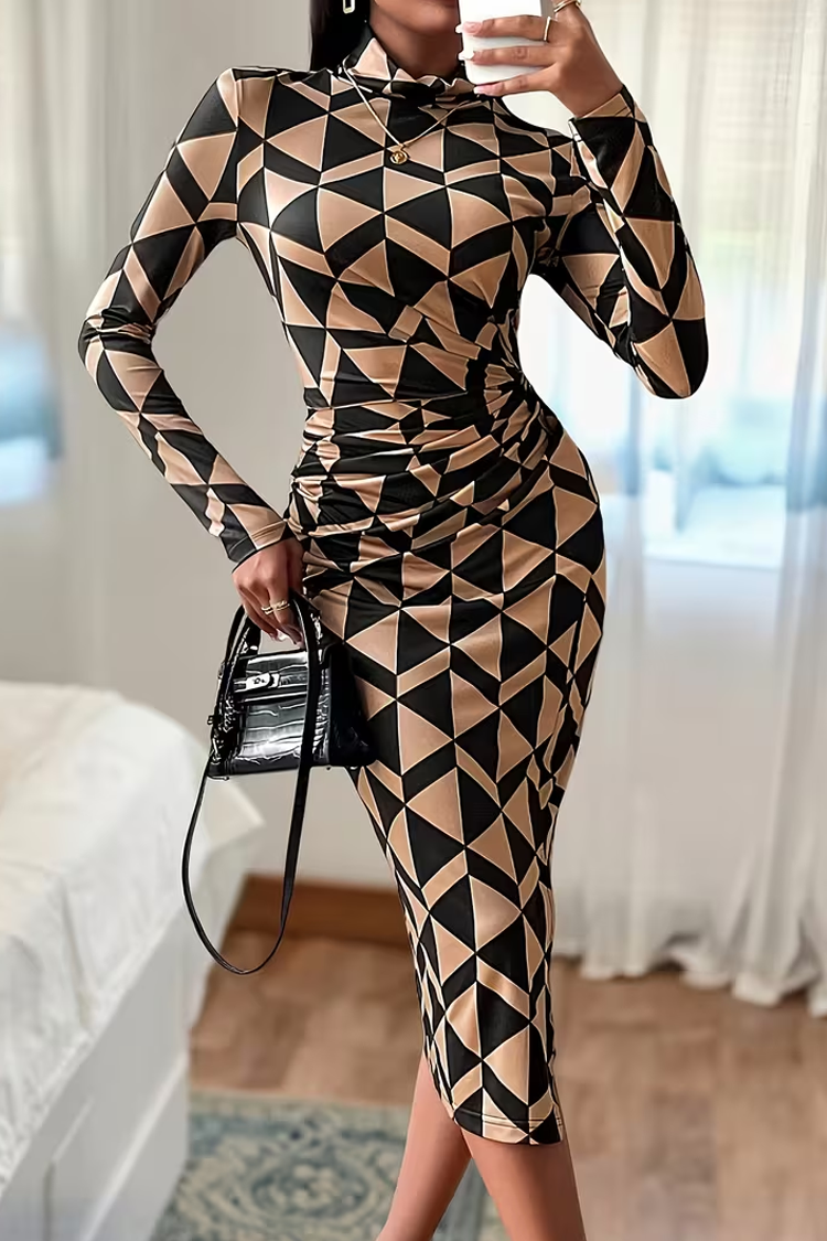 Elegancka sukienka midi w dwukolorowy wzór – ponadczasowa klasyka