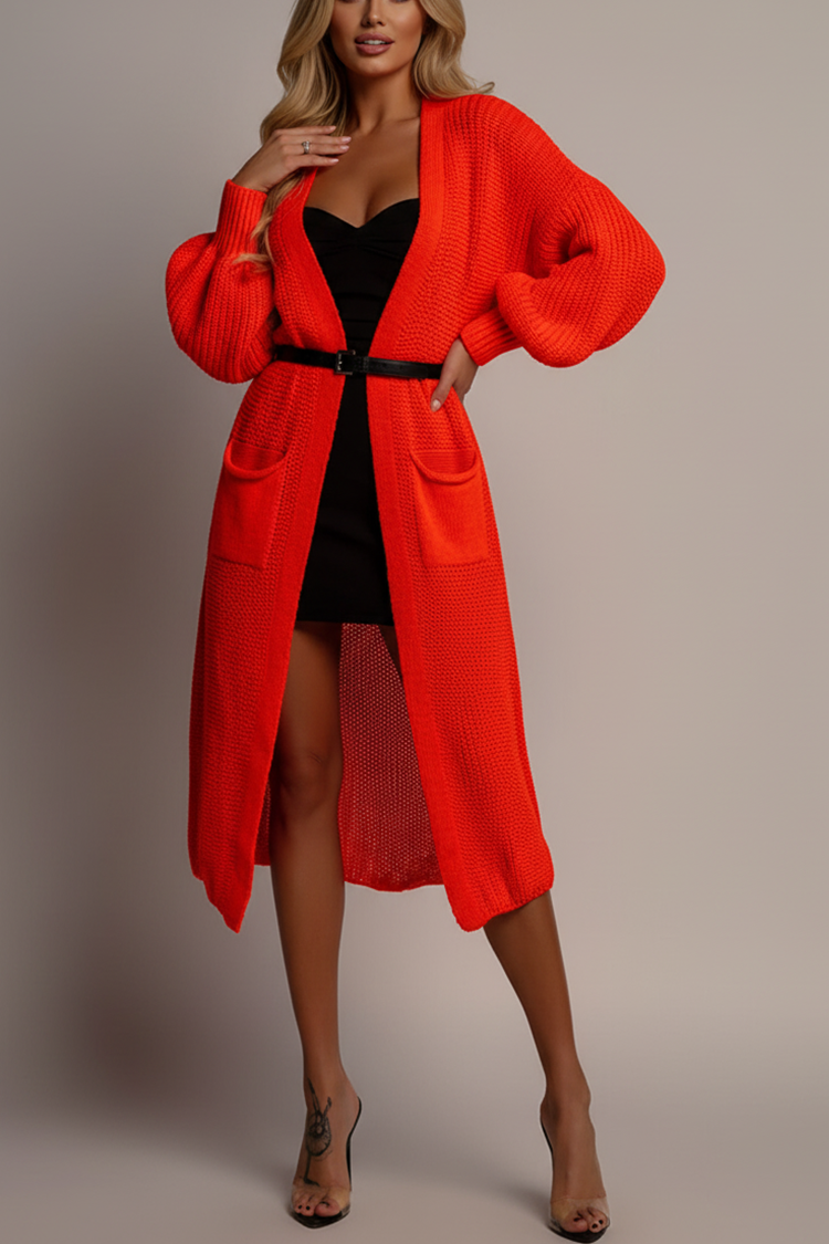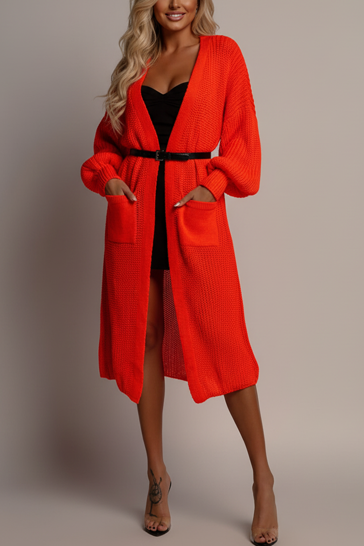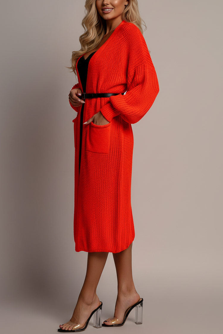Elegancki kardigan damski wykonany z miękkiej i ciepłej tkaniny, która zapewnia komfort termiczny i przyjemne uczucie podczas noszenia w codziennych stylizacjach. Model o klasycznym kroju został wyposażony w praktyczne kieszenie boczne, łączące funkcjonalność z modnym designem.