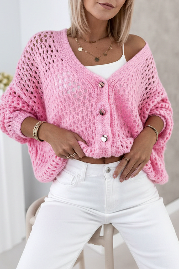 - Model wykonany jest z siateczki, ma długie rękawy i zapięcie na guziki na całej długości.