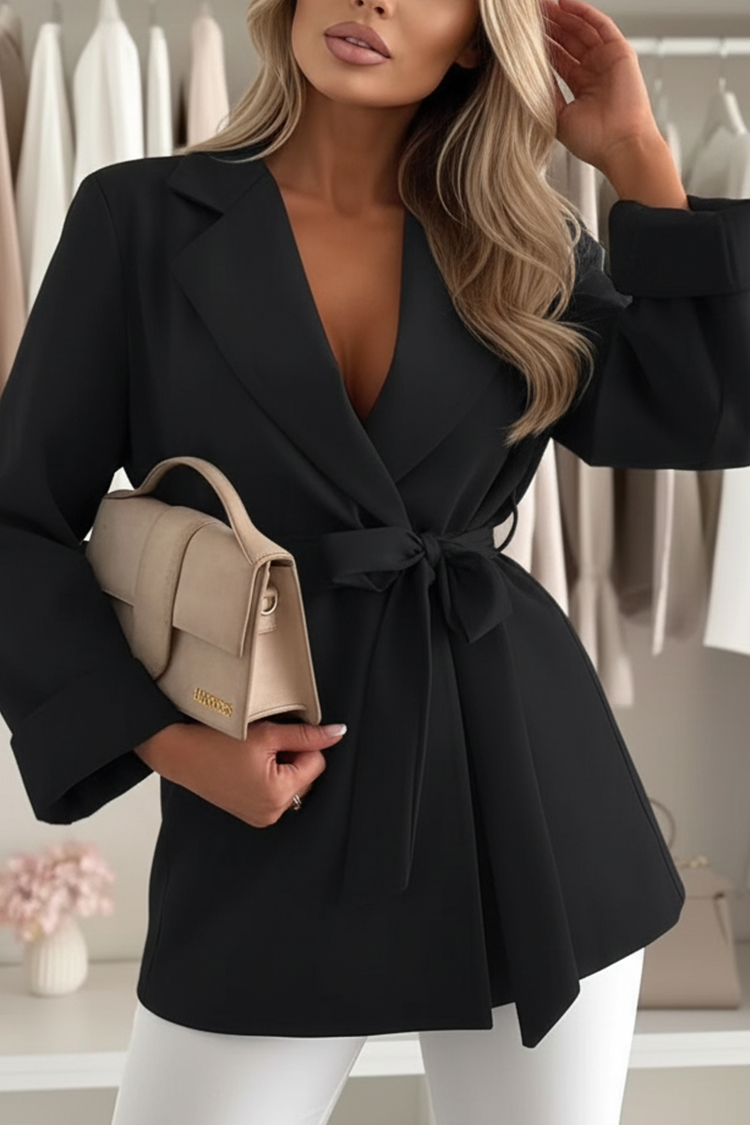 - Połącz styl z wygodą! Model ma wygodny krój, stylowy kołnierz z klapami i pasek z tego samego materiału.