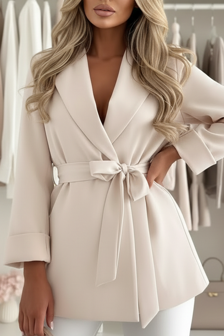 - Połącz styl z wygodą! Model ma wygodny krój, stylowy kołnierz z klapami i pasek z tego samego materiału.