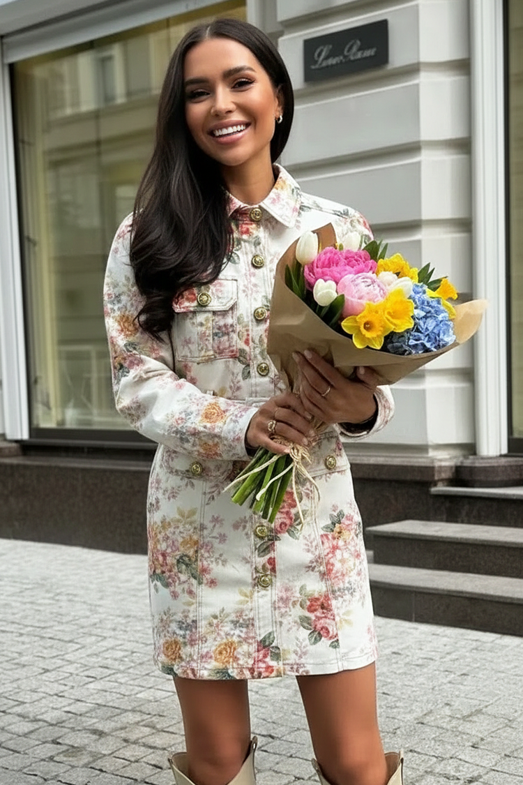 - Aby uzyskać atrakcyjny wygląd, wybierz tę krótką, jeansową sukienkę z kwiatowym wzorem, idealną na co dzień.