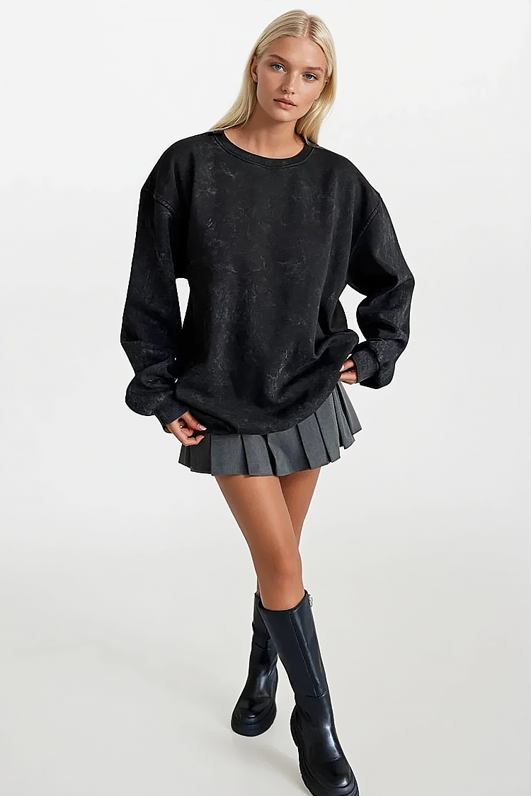 - Model ma okrągły dekolt i luźny krój, który pasuje do każdej sylwetki.
