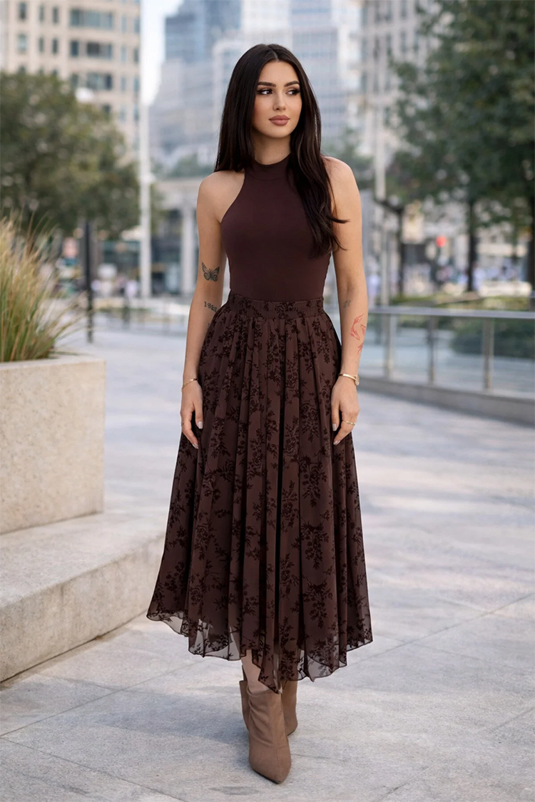 - Nowoczesna spódnica w brązowym kolorze, idealna do różnych stylizacji na co dzień.