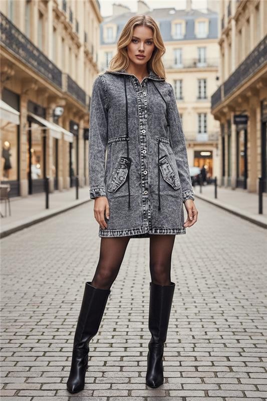 - Aby uzyskać stylowy wygląd, wybierz tę kurtkę jeansową, pasującą do każdej stylizacji.