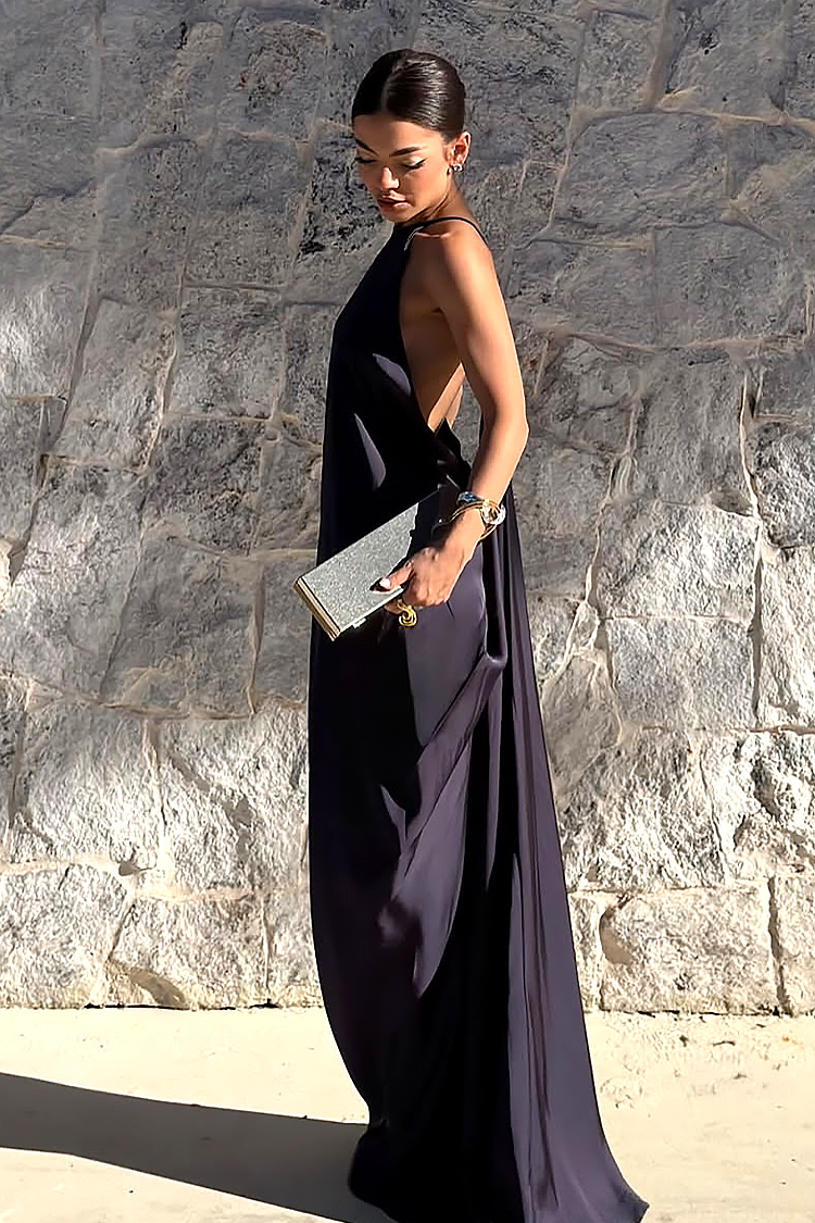 - Model ma elegancki krój, wycięcie, cienkie ramiączka i odkryty tył.