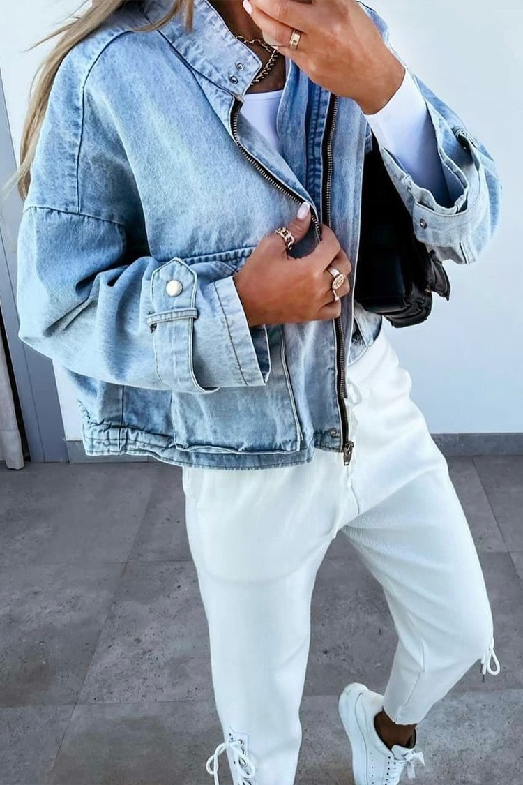 - Aby uzyskać stylowy wygląd, wybierz tę kurtkę jeansową, pasującą do każdej stylizacji.