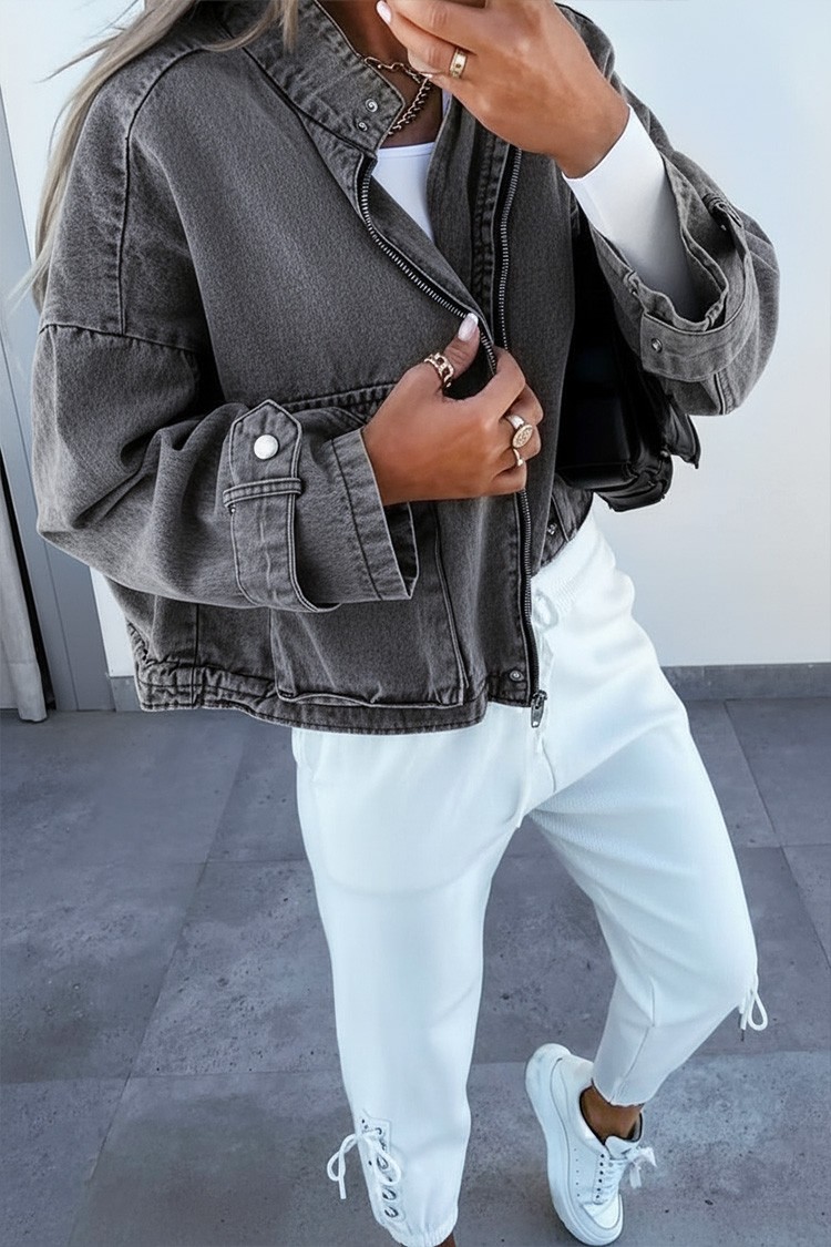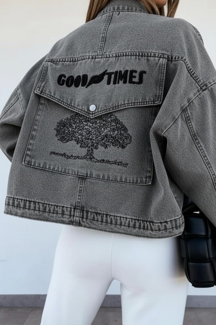 - Aby uzyskać stylowy wygląd, wybierz tę kurtkę jeansową, pasującą do każdej stylizacji.