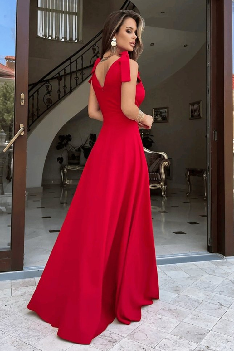 - Aby przyciągnąć wszystkie spojrzenia, wybierz tę długą sukienkę o wyjątkowym kroju i klasycznym kolorze.