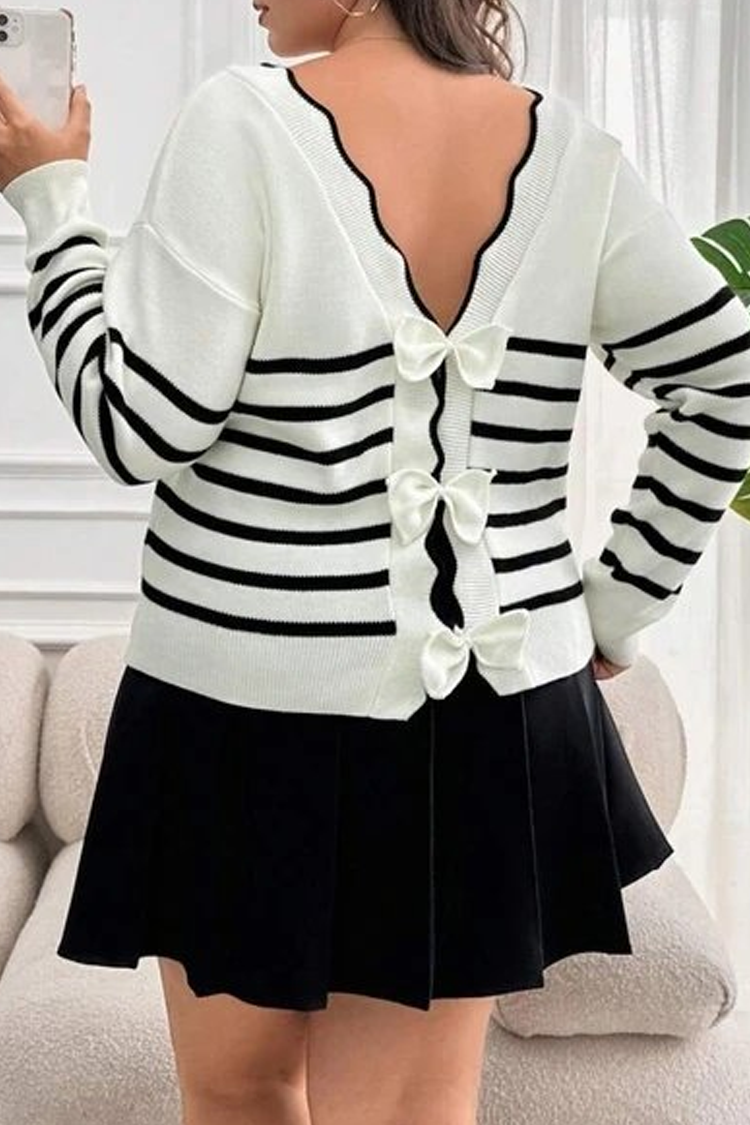 - Model ma luźny krój, atrakcyjne wstążki z tyłu i czarne detale.
